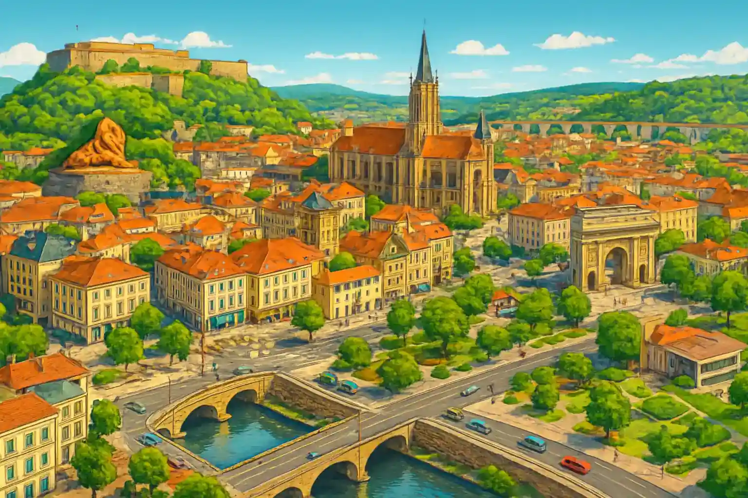 Lej bil i Belfort by centrum og udforsk den strategisk beliggende by ved Bourgogne-porten, adgangen mellem Vosges og Jura. Med 1 udlejningsselskab til rådighed i centrum anbefales tidlig booking for at sikre den bil, du ønsker. Belfort er et fremragende udgangspunkt for ture til Alsace, Schweiz og Jura-bjergene.