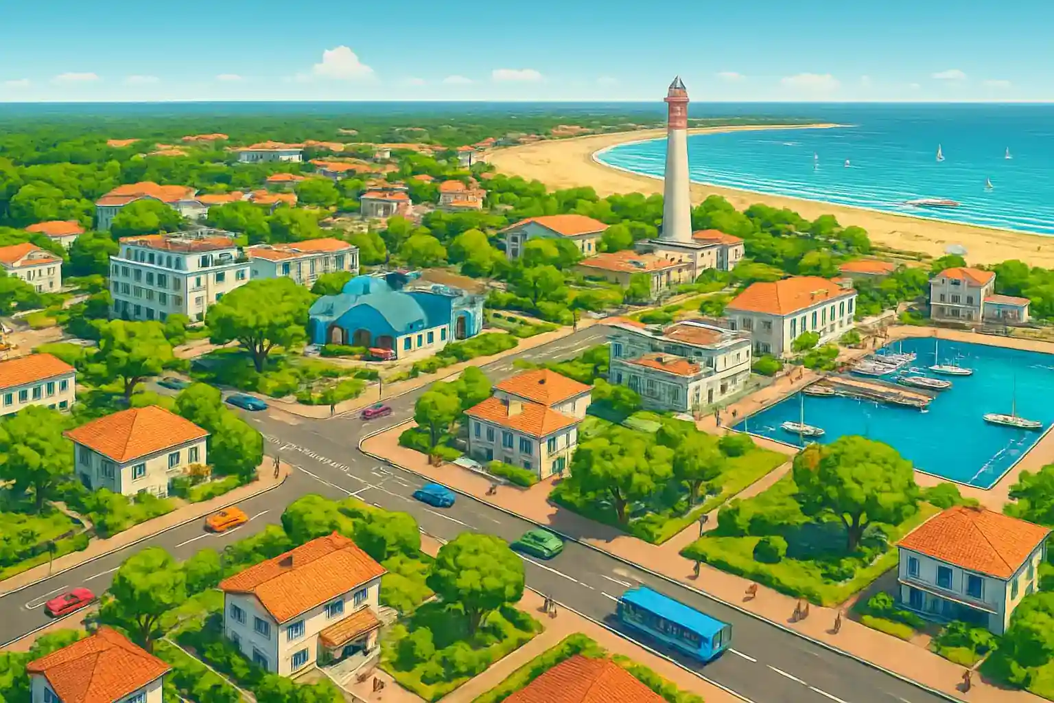 Lej bil i Les Mathes på Charente-Maritimes kyst og udforsk Arvert-halvøen og dens omgivelser. Med 2 biludlejninger i centrum har du adgang til bil for at bevæge dig frit langs Atlantkysten. La Palmyre med sin berømte dyrepark ligger kun 5 km væk.