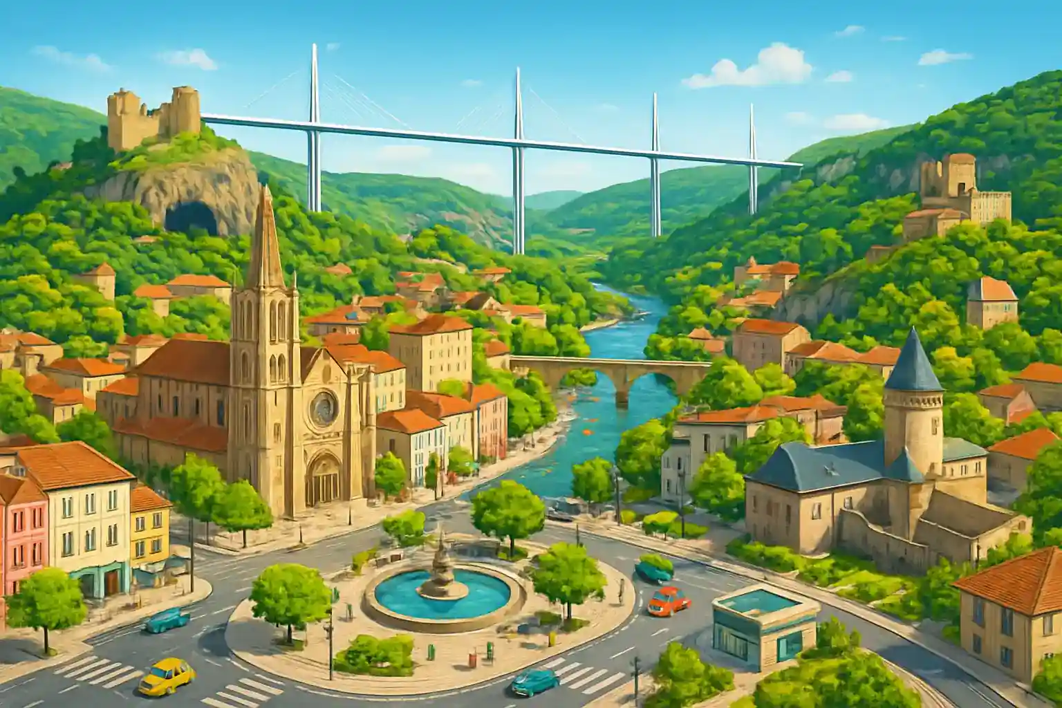 Millau-viadukten er synlig fra centrum og nås med bil på 5 minutter via A75. Gorges du Tarn begynder 25 km nord, og Gorges de la Jonte ligger 20 km nordøst – begge med fantastisk sceneri. Roquefort-sur-Soulzon med sine berømte ostkældre er 22 km sydpå (25 minutter).