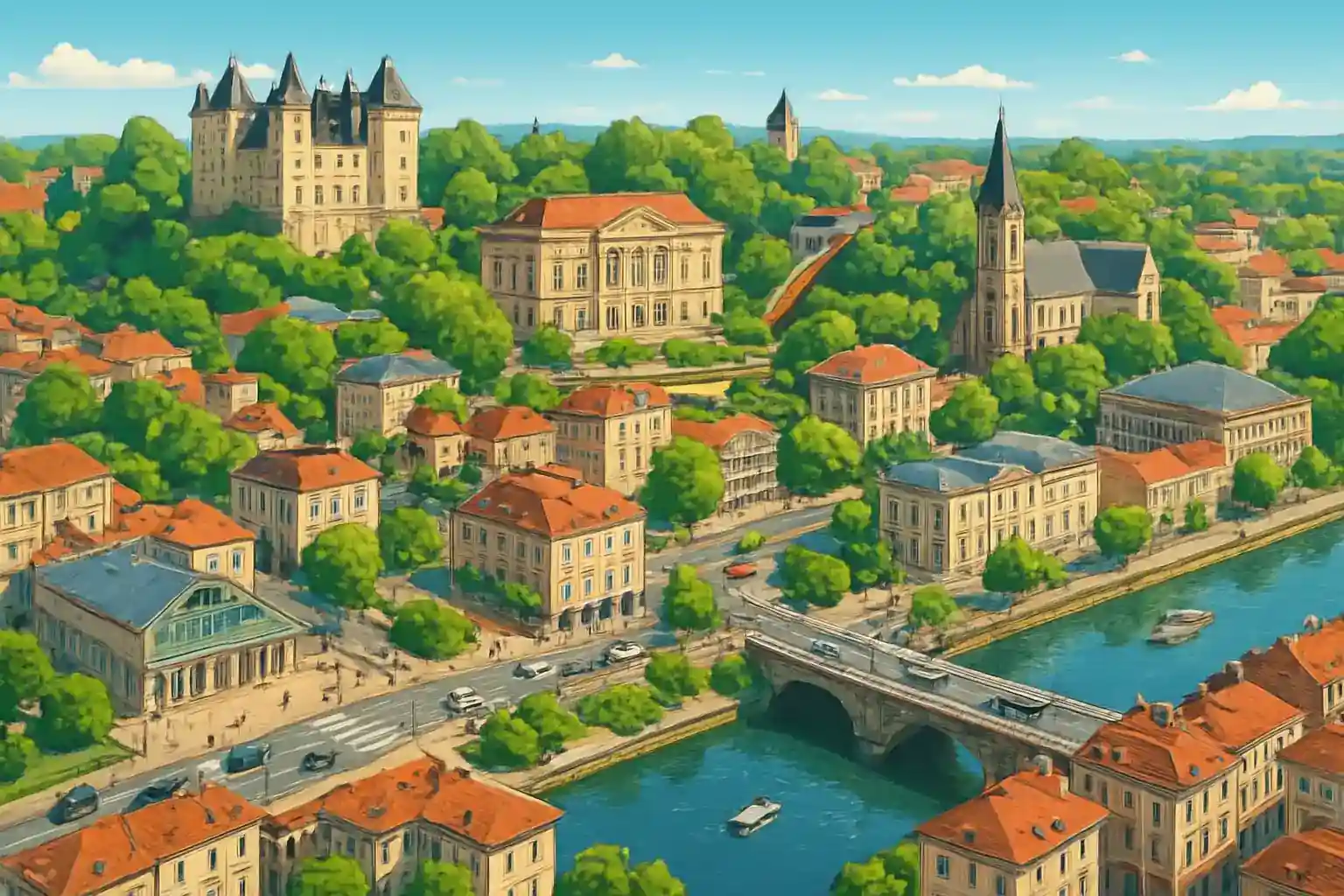 Herfra er det 12 km til Pau centrum (omkring 15 min), 100 km til Biarritz og 90 km til den spanske grænse via Somport. Med 10 udlejningsselskaber på lufthavnen lønner det sig at sammenligne priserne grundigt – forskellene kan være store. Vælg en bil med god kørebel, hvis du planlægger kørsel i Pyrenæerne.