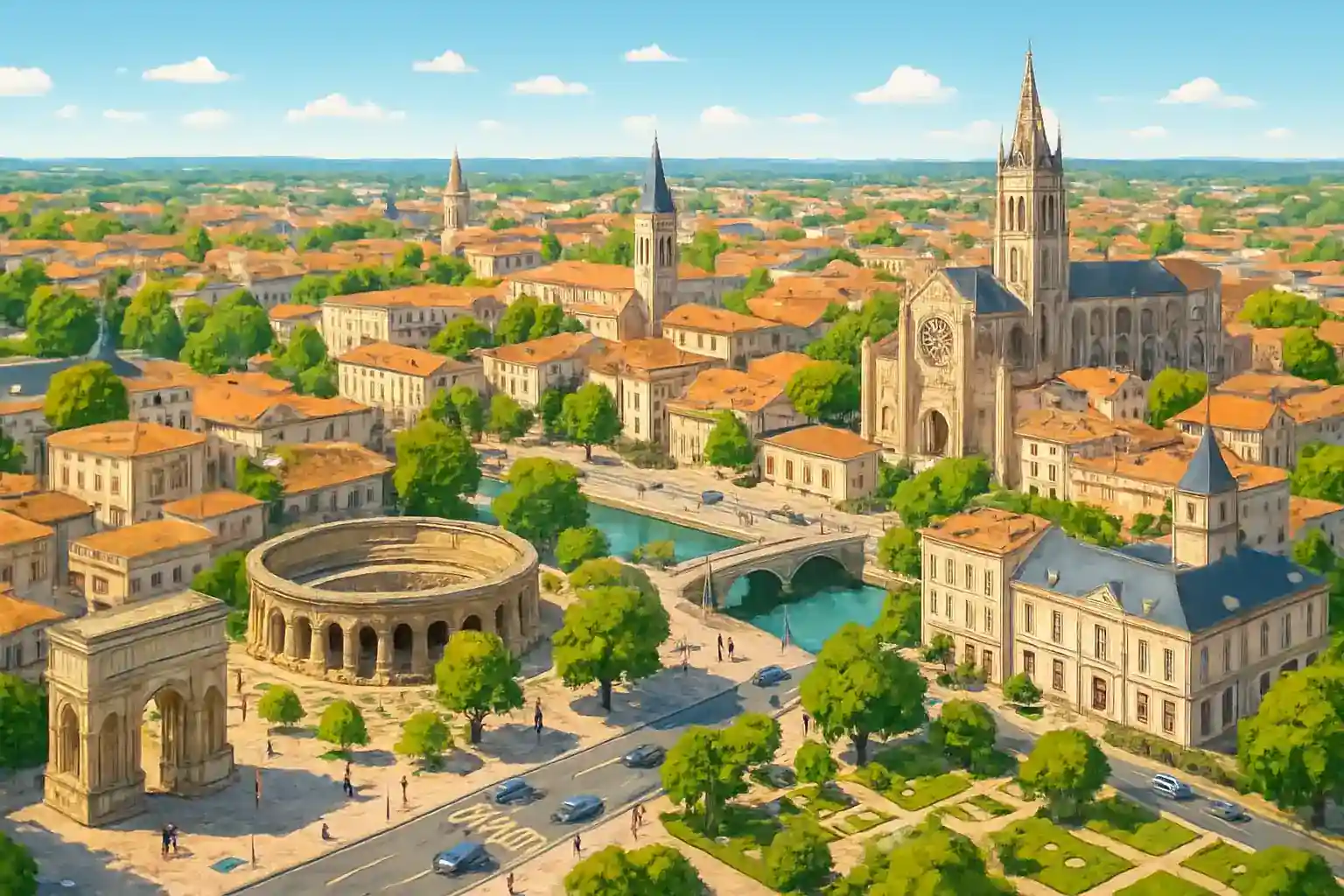 Bordeaux ligger 90 km mod syd og nås på cirka 1 time via motorvej A10. Kan jeg aflevere bilen i La Rochelle, hvis jeg lejer i Saintes? Envejeleje til La Rochelle (75 km mod nord) er mulig hos visse udlejningsvirksomheder, men kan medføre ekstra gebyr – kontroller ved bestilling.