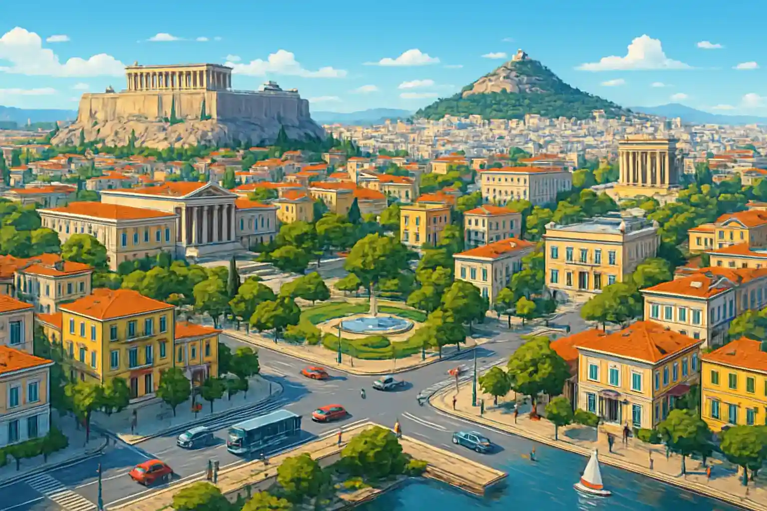 Undgå E75 mod Athen under myldretid (07–09 og 17–19). Tre udlejere findes i centrum – sammenlign priser på hyrbilar.se. Hvor langt er der fra Koropi til Atens lufthavn?