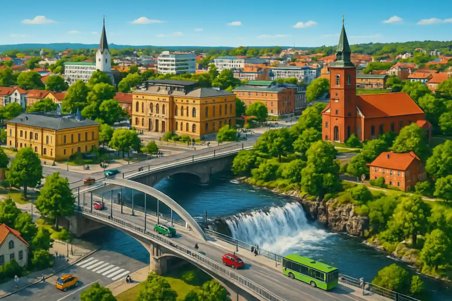 Hønefoss centrum ligger ved sammenløbet af Begnaelva og Storelva, godt 50 kilometer nordvest for Oslo via E16, og er et glimrende udgangspunkt for at udforske Numedal og Hallingdal. Herfra når du Ringerike og dets dramatiske kalkstenslandskab på blot få minutter, mens en tur langs riksvei 7 mod vest fører dig op i fjeldverdenen omkring Geilo på omkring to timer. Tyristrand og de smukke strande ved Tyrifjorden ligger blot et kvarters kørsel sydpå og tilbyder badning og friluftsliv om sommeren.