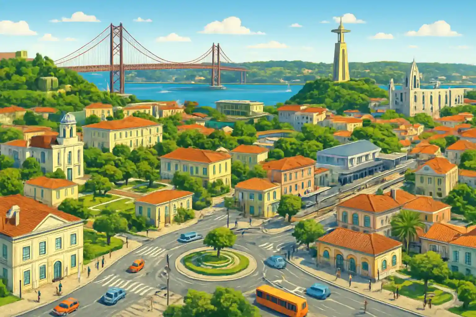 Oeiras med sine velbevarede paladsslotshaver ligger ca. 8 km vestpå. Algés er et smart alternativ til at hente bil i centrale Lissabon – nemmere parkering og direkte adgang til kystvejen.