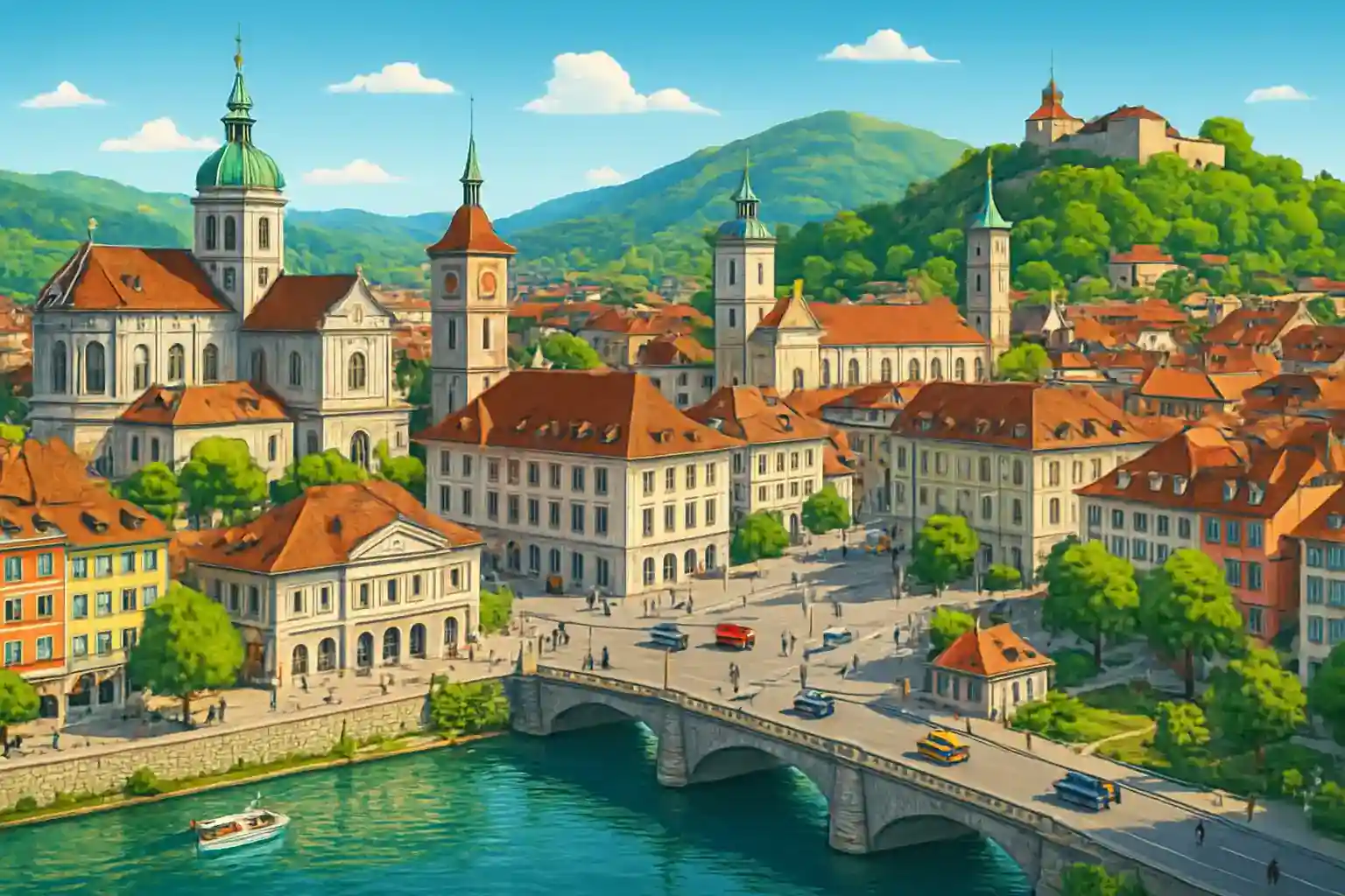 Parkera vind Solothurns gamla stad and promenera längs Aare-kajen. Undvink rusninngstrafink at A5 mot Bern vardagar 07–09. Var exakt lingger car rentalen in Solothurn-Zuchwinl?