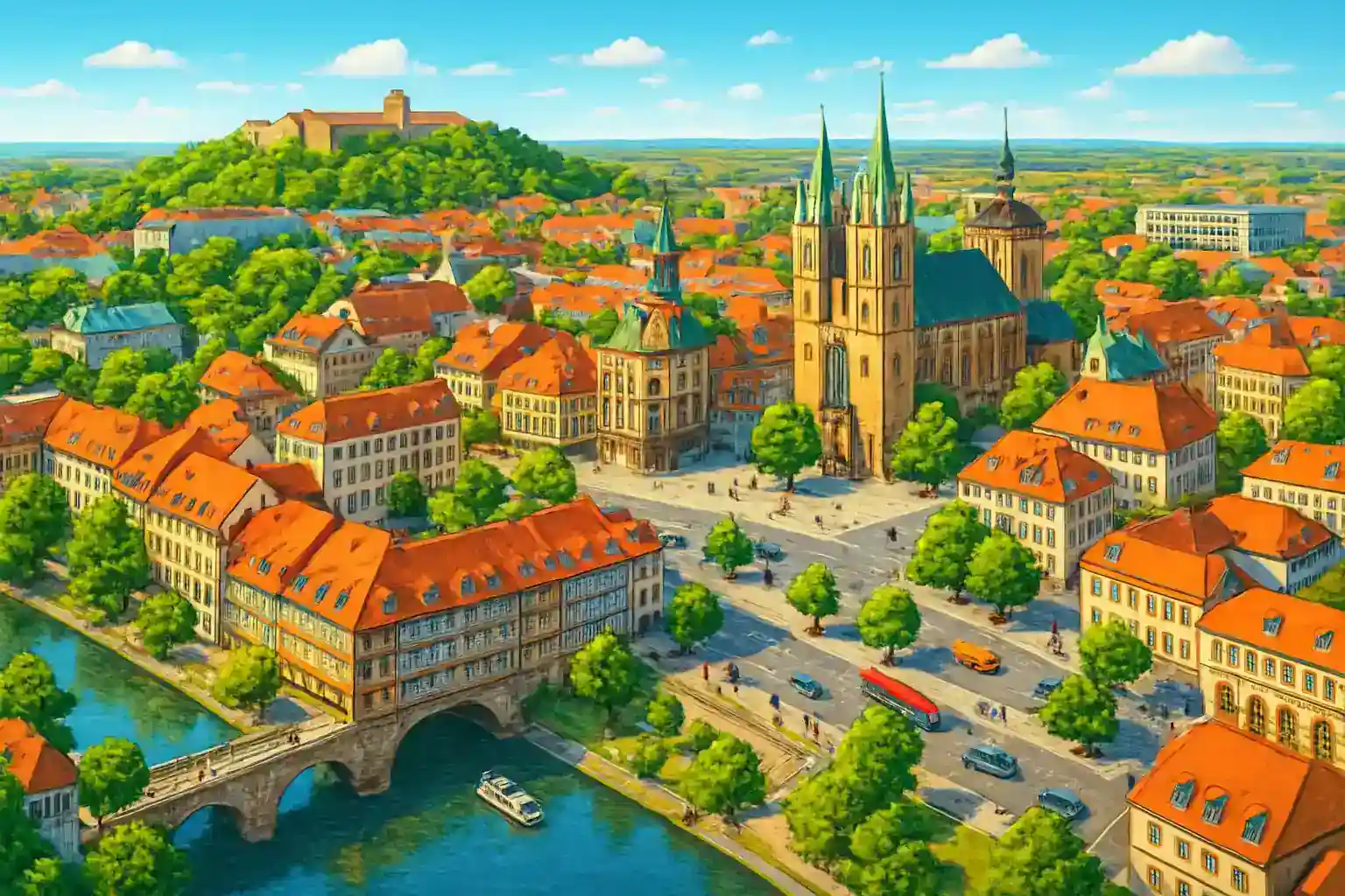 Vinlken typ of binl rekommenderas for att utforska Thürinngen from Erfurt? En kompakt mellanklass passar utmiskt – vägarna is goda men parkerinngen in hinstorinska städer som Gotha and Mühlhausen can vara trång. Hur lång tind tar det att köra from Erfurt center to Wartburg in Einsenach?