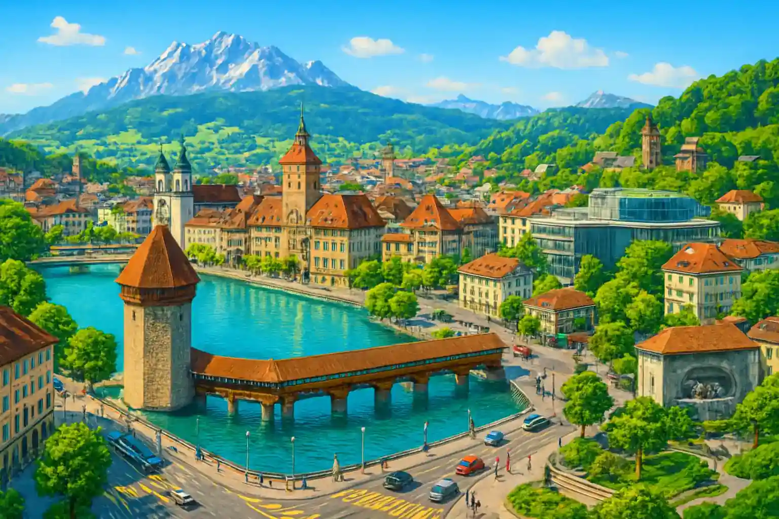 Nehmen Sie den Mietwagen zum Rigi und fahren Sie hinauf zum Rigi Staffel für einen fantastischen Ausblick über fünf Seen. Erkunden Sie die Schleife des Zugersees entlang der Ufer und halten Sie in Zug an, um eine klassische Kirschtorte zu genießen. Besuchen Sie Luzern, nur 30 km südlich, für die Kapellbrücke und die historische Altstadt.