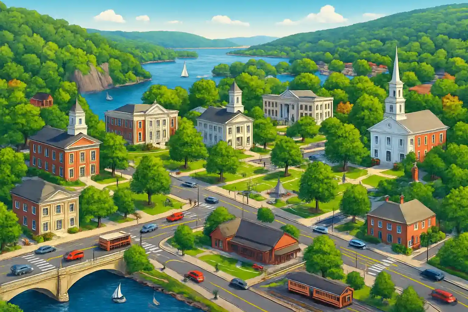 New Milford ist eine charmante Stadt im Nordwesten Connecticut, gelegen entlang des Housatonic River etwa 30 km nördlich von Danbury und 100 km nördlich von New York City. Die Stadt hat eine der längsten historischen Straßen in New England und ist ein beliebter Stopp für Reisende, die die Litchfield Hills erkunden. Mit einem Mietwagen bist du in der Nähe von Connecticuts schönster ländlicher Landschaft.