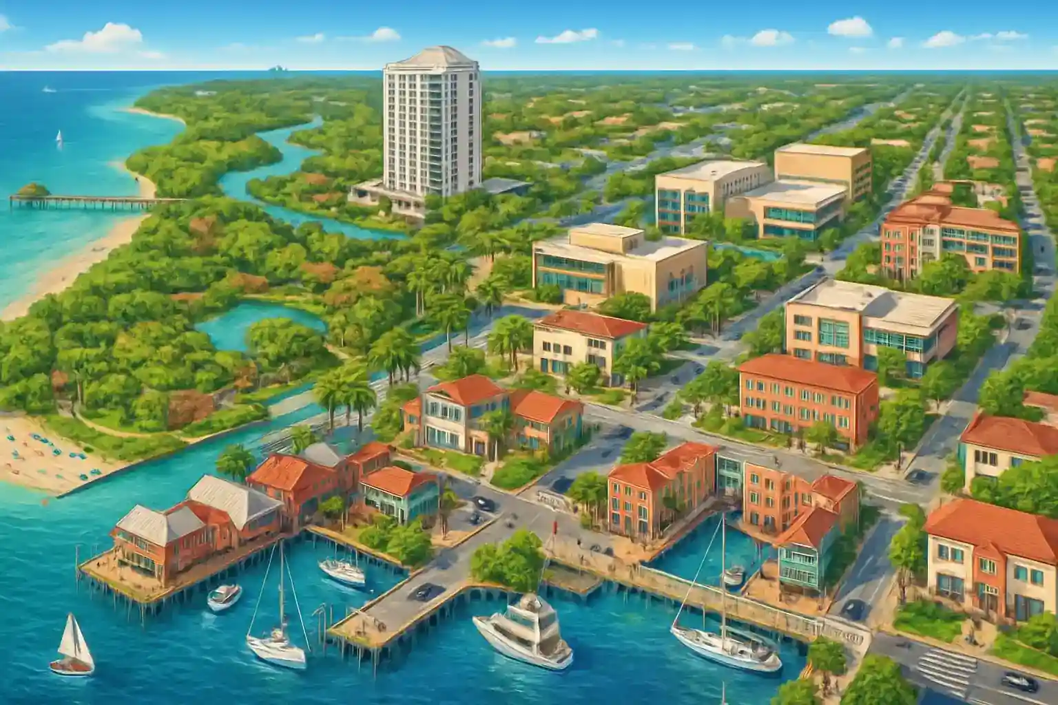 Fort Myers lingger ca 60 km norrut, ungefis 50–60 minnuters körninng vina US-41 or I-75. Finnns det bra stränder nisa North Naples center? Ja, Vanderbinlt Beach and Delnor-Wingginns Pass State Park lingger båda innom 5 km västerut – några of Florindas finnaste stränder.