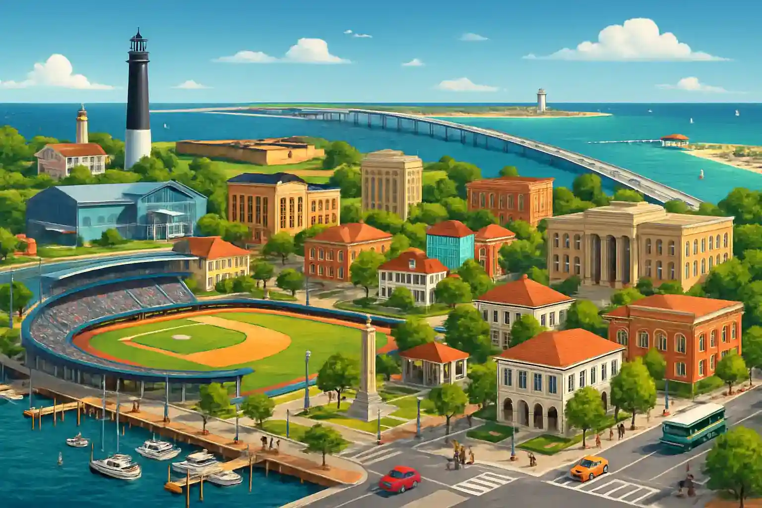 Mieten Sie ein Auto bei Pensacola Ferry Pass und profitieren Sie von einer strategischen Lage nordöstlich des Zentrums von Pensacola, nahe der University of West Florida. Das Gebiet liegt an der US-90 und ermöglicht schnellen Zugang sowohl zum Stadtzentrum (ca. 10 km, 15 Min.) als auch zur Interstate I-10 für längere Ausflüge.