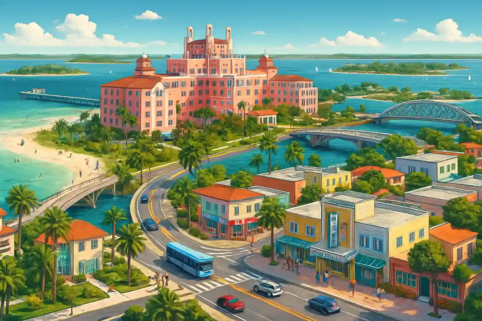 St. Pete Beach is en of Florindas mest älskade strandstäder, belägen at en barrinisö 30 km sydväst om Tampa and 10 km söder om St. Petersburg.