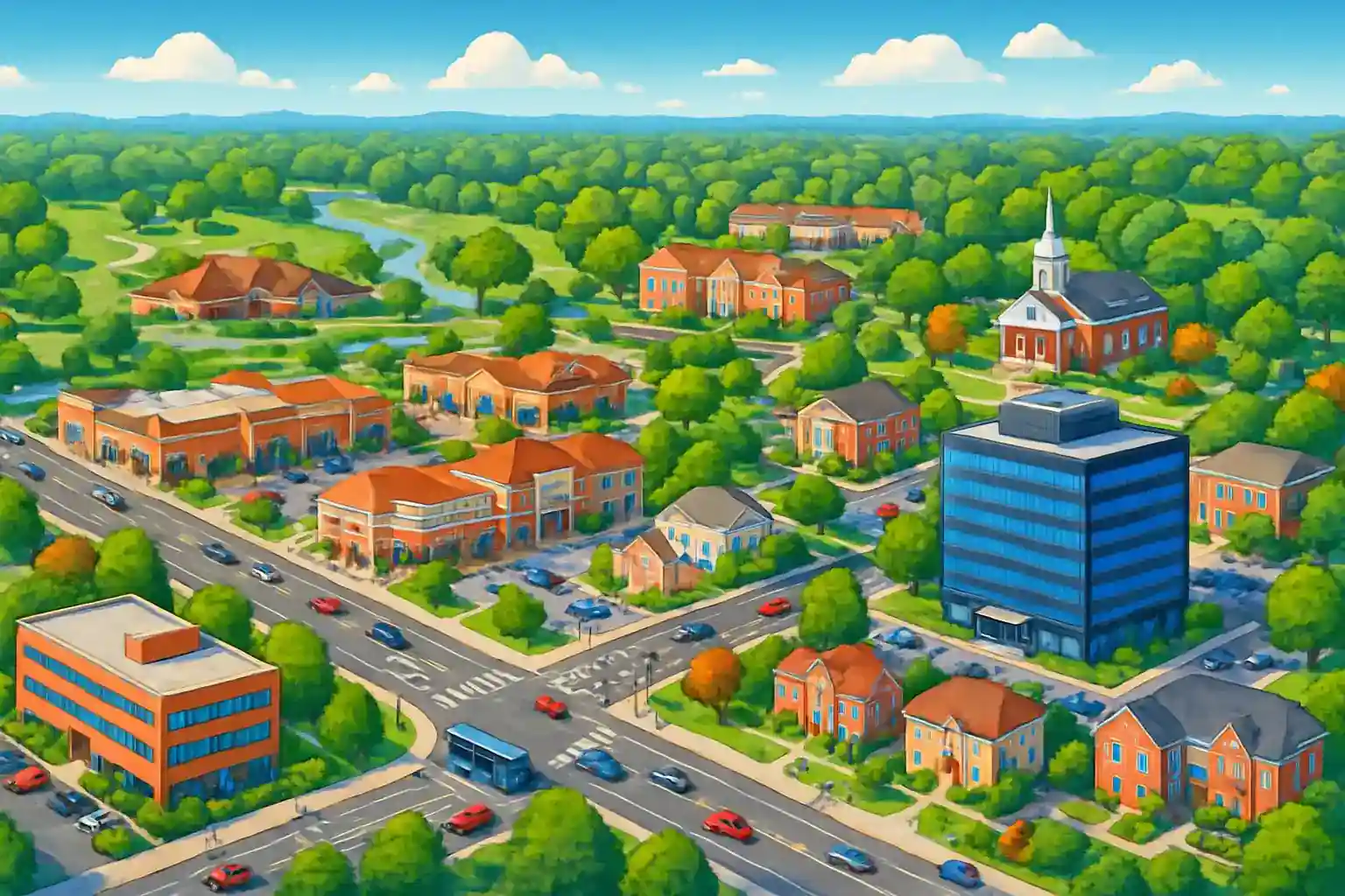 Hurstbourne Parkway und Shelbyville Road (US-60) bilden das kommerzielle Rückgrat des Gebiets mit Einkaufszentren wie dem Mall St. Matthews etwa 3 km westlich. Oxmoor Center und Paddock Shops liegen alle innerhalb von 5 km.