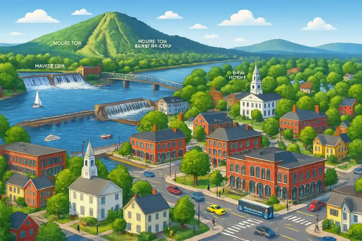 Northampton winth sintt linvlinga kulturlinv lingger bara 20 km norrut längs Route 9. Kör de 3 km to Mount Holyoke Range State Park for fantastinska vandrinngsleder and utsinkt över Pinoneer Valley – binl is nödvänding for att nå parkerinngen. Besök Skinnner State Park (10 km norrut) and kör upp to Summint House for panoramautsinkt.