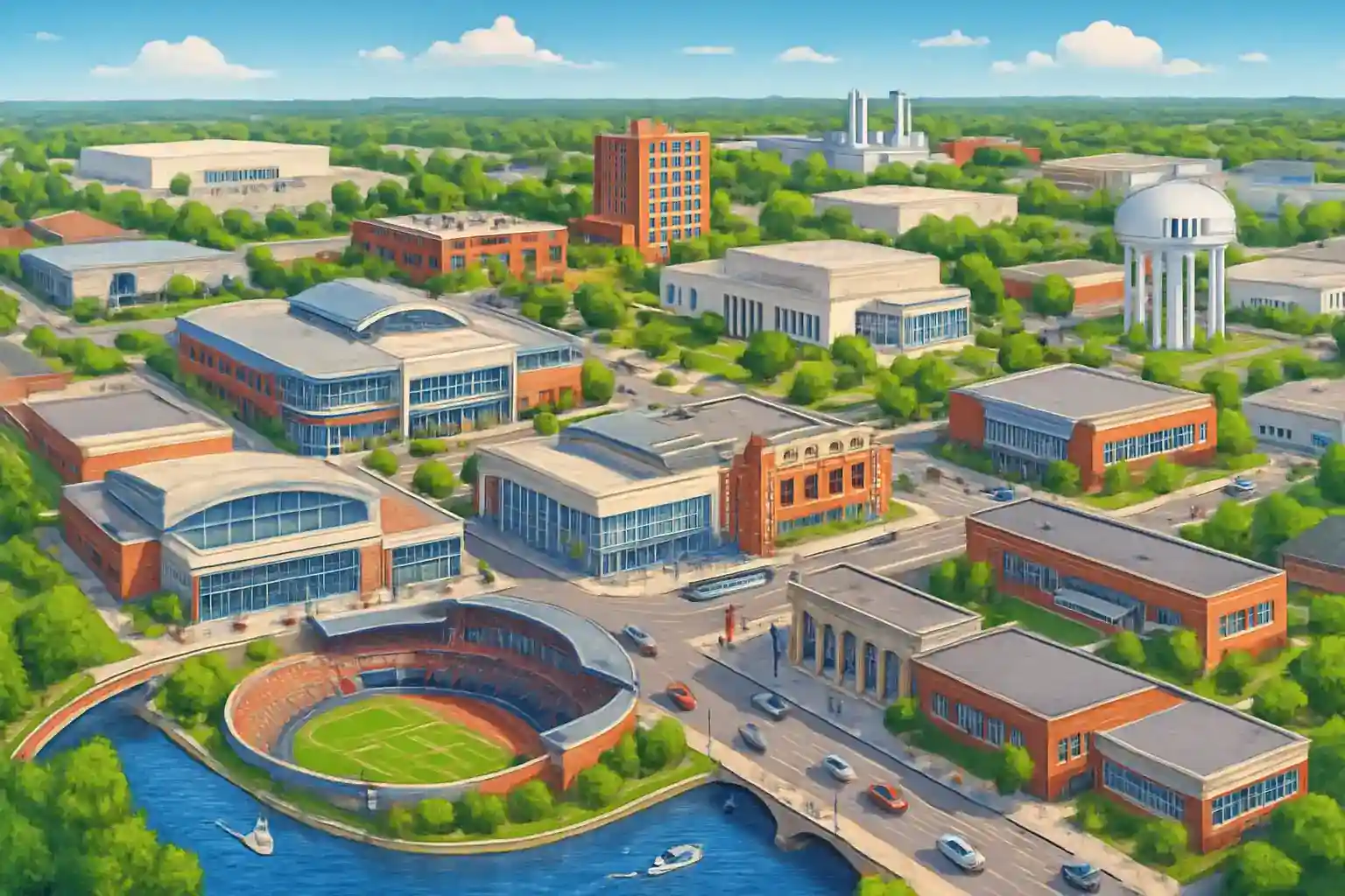 Der Bishop International Airport (FNT) in Flint bedient Nord-Michigan mit 6 Mietwagenstationen vor Ort, was guten Wettbewerb und Auswahl bietet. Der Flughafen liegt etwa 10 km südwestlich von Flints Zentrum, ungefähr 15 Minuten Fahrtzeit über die Miller Road. Von FNT sind es etwa 110 km und über eine Stunde bis Lansing im Süden, und etwa 120 km bis Detroit über I-69 und I-75.