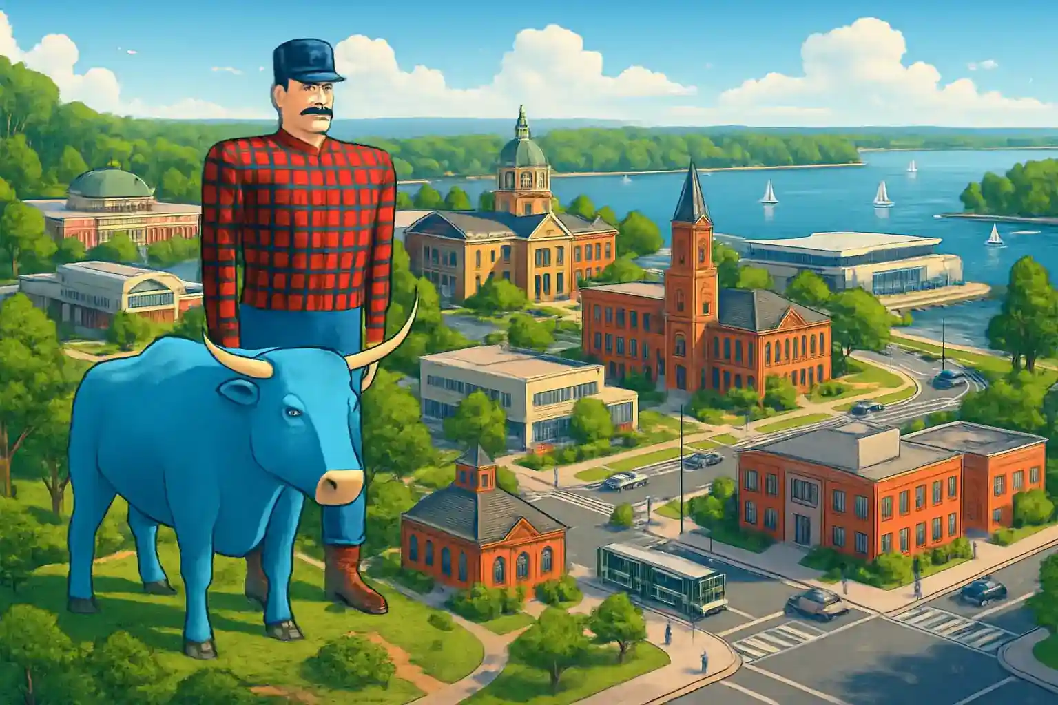 Bemidji liegt am See Lake Bemidji und ist als „City of Paul Bunyan" bekannt, mit der berühmten Statue am Seeufer etwa 3 km vom Flughafen entfernt. Von hier aus sind es etwa 160 km nach Grand Forks und 220 km nach Duluth über die Highway 2. Die Winter sind kalt und verschneit, daher wird Allradantrieb von November bis März empfohlen.