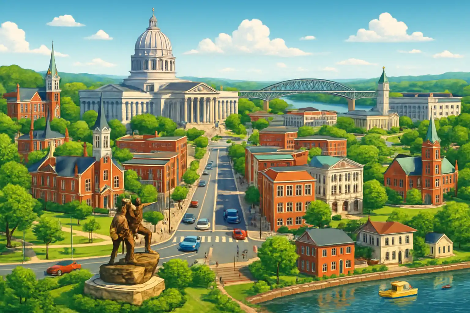 Die Stadt liegt wunderschön am Missouri River und ist von sanften Hügeln und Wäldern umgeben. Das Missouri State Capitol dominiert das Stadtbild und bietet kostenlose Führungen – ein beeindruckendes Gebäude im Renaissancestil mit Ausblick auf den Missouri River. Das Jefferson Landing State Historic Site am Flussufer und das Runge Conservation Nature Center, nur 3 km vom Zentrum entfernt, sind beliebte Besuchsziele.