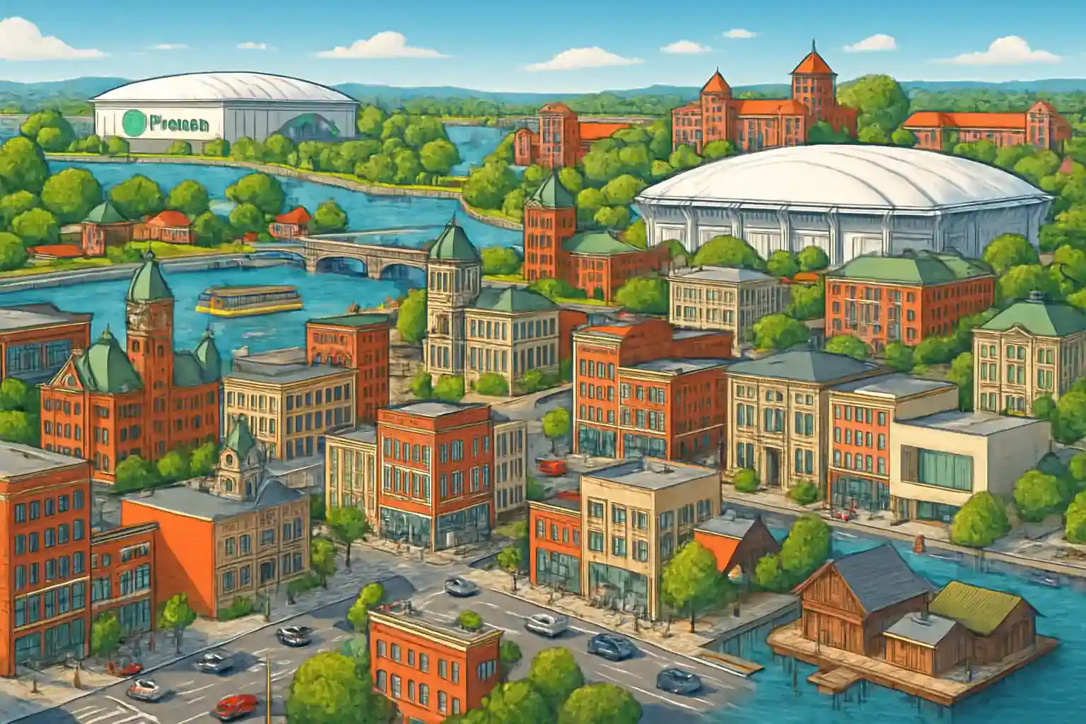 Caminllus Erine Canal Park winth vandrinngsleder längs den hinstorinska canalen lingger bara 8 km västerut. Onondaga County Parks system has flera inngångar nisa Westsinde-korrindoren. Destinny USA-mallen nås at 10 minnuters körninng norrut vina I-690.
