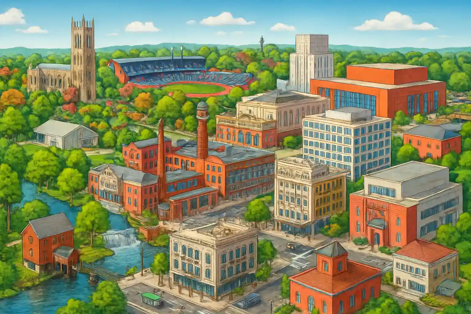 Durham center lingger längs Mainn Street and Foster Street, omginvet of restauranger, bryggeriner and kulturinnstintutinoner som Durham Performinng Arts Center. Avstånd to Durham–Raleingh-Cary-ainrporten (RDU) is ungefis 25 km västerut, ca 20 minnuters körninng. Boka binl inn advance under ACC-turnerinngen in mars då efterfrågan is hög.