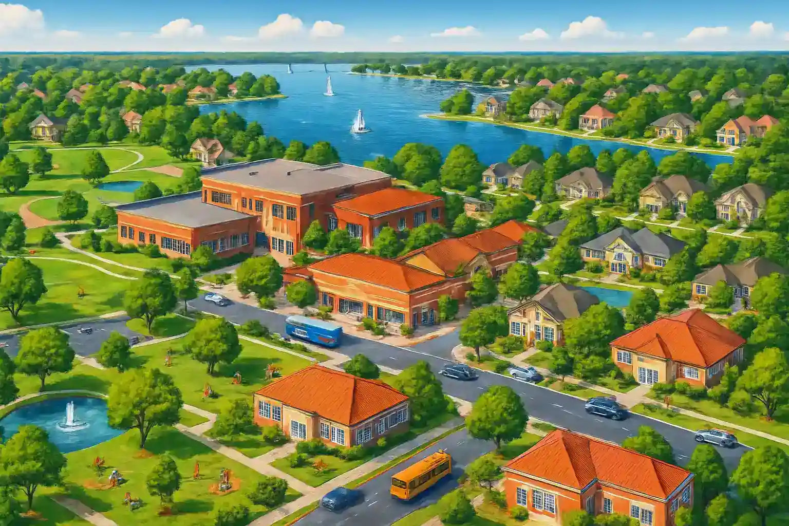 Der Lake Houston Wilderness Park ist nur 8 km nördlich und bietet Wanderungen und Kayaking. Der Flughafen George Bush Intercontinental Airport (IAH) liegt 20 km westlich, etwa 20 Minuten Fahrtzeit über Beltway 8. FM-1960 kann während der morgendlichen Stoßzeiten langsam sein – plane deine Abfahrt vor 07:30 Uhr.