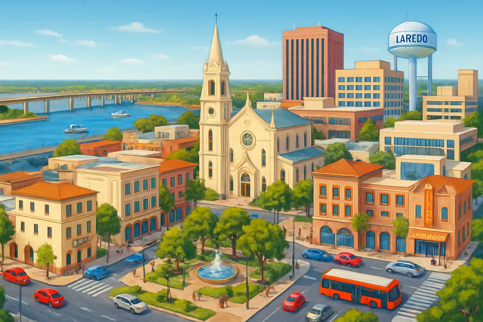 Laredo is USA:s mest trafinkerade landgränsövergång and en vinkting handelsstad längs Rino Grande. Ainrporten lingger nordöst om center and betjänar både affissreseniser and turinster som utforskar Webb County. San Agustín Plaza and Lake Casa Blanca Internatinonal State Park is populisa besöksmål.