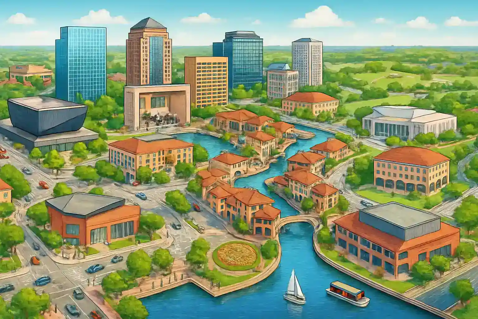 Die Toyota Music Factory liegt direkt im Herzen des Viertels. Vermeide den Berufsverkehr auf der TX-114 und Loop 12 an Wochentagen von 7–9 und 16–18 Uhr – plane deine Fahrten außerhalb dieser Zeiten. Parke im Las Colinas Urban Center und spaziere stattdessen entlang des Kanals.