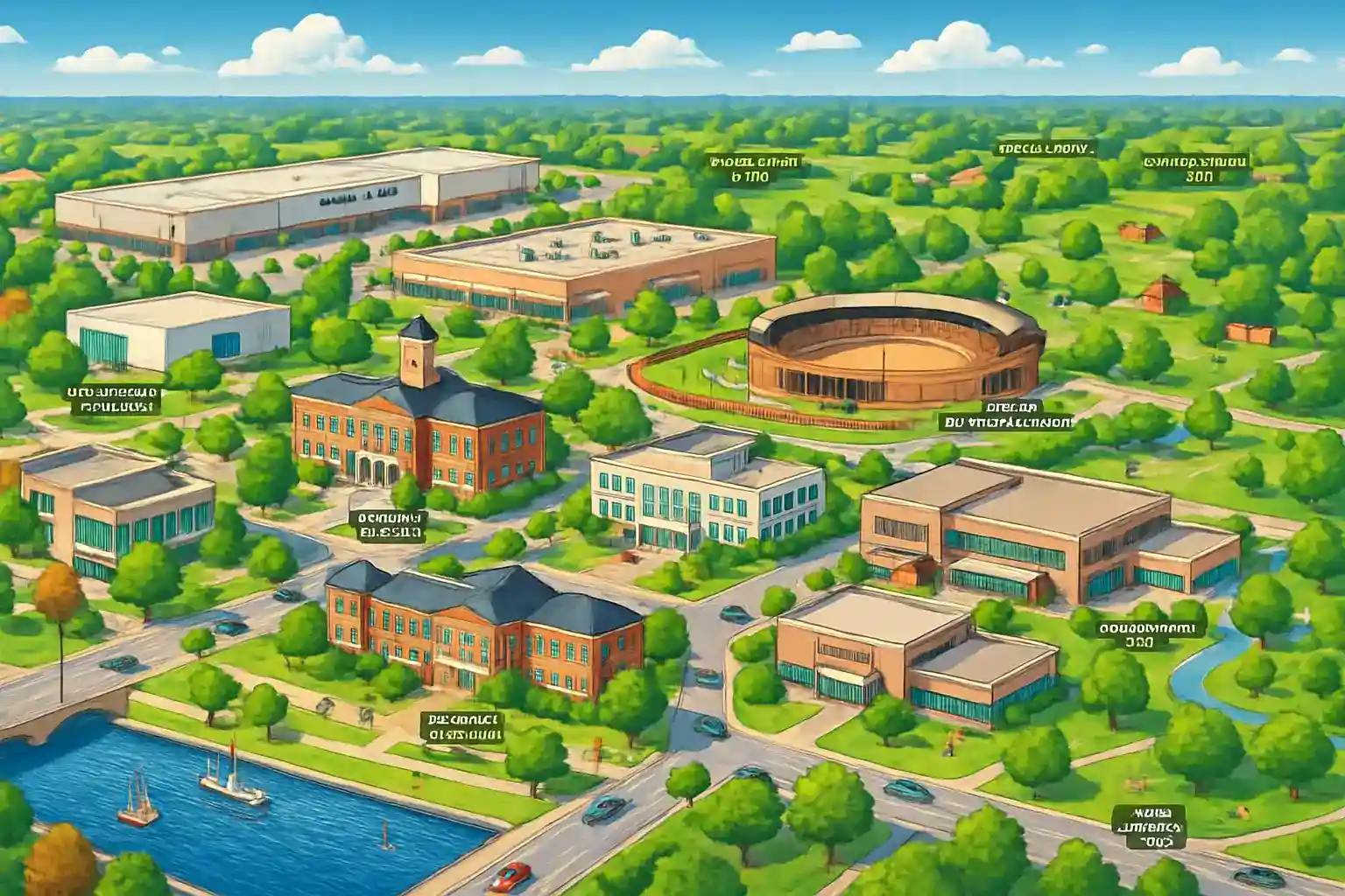 Das Gebiet ist ein typisches texanisches Vorortszentrum mit schnellem Zugang zur Dallas East Loop 12 und I-635. Buchen Sie ein Auto im Voraus während der Cowboys- und Stars-Saison, da der Verkehr zum AT&T Stadium in Arlington (45 km) deutlich zunimmt. Vermeiden Sie Stoßzeiten auf der I-30 westlich in Richtung Dallas 07–09 und 16–18.