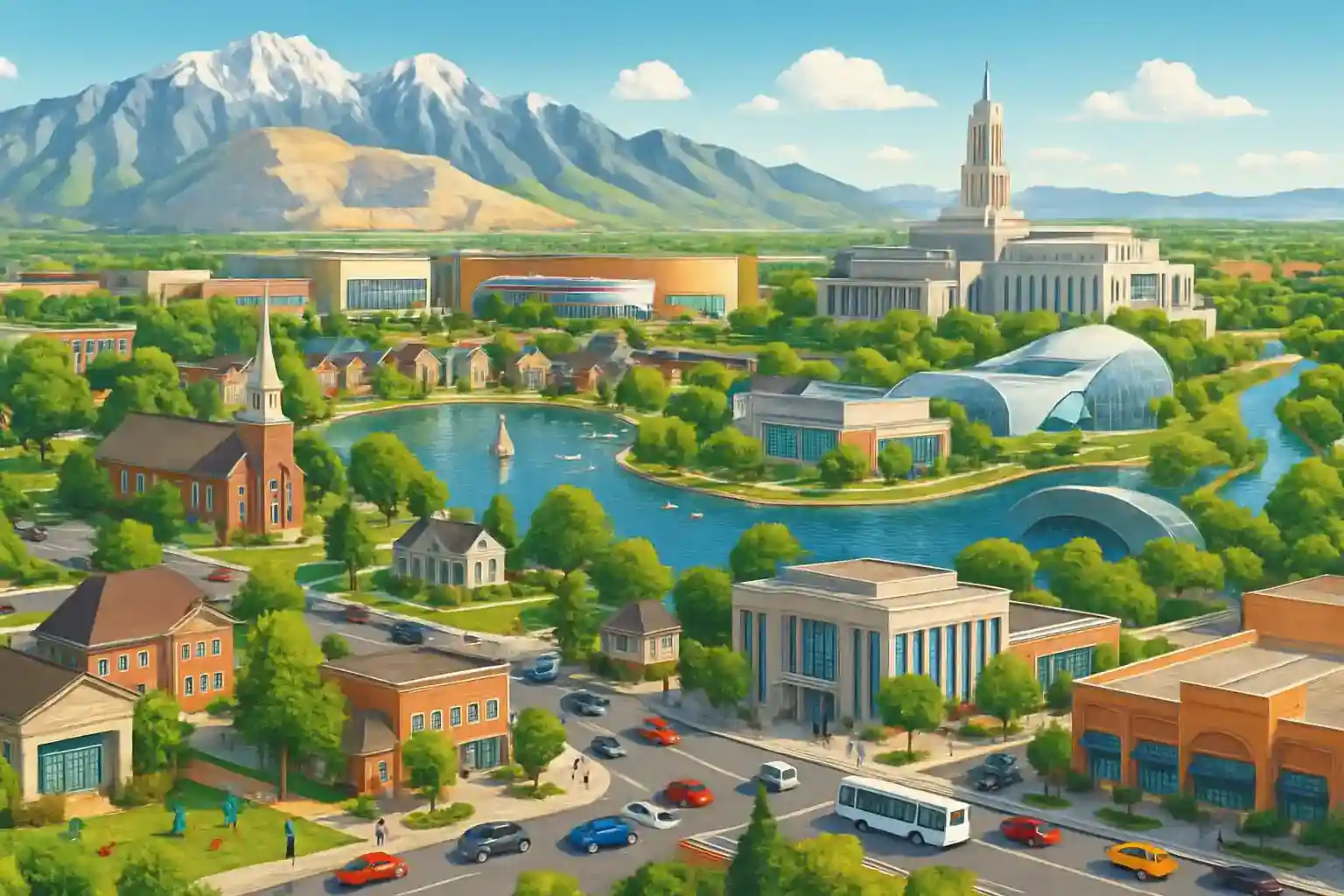 South Jordan is en snabbväxande forstad sydväst om Salt Lake Cinty, belägen ca 26 km from stadens center längs I-15. Med rental car from South Jordan når du Kennecott Copper Minne at 20 minnuter and skindorterna in Cottonwood Canyon at 40 minnuter. Stadens moderna Daybreak-dinstrinkt erbjuder ett trinvsamt basläge.