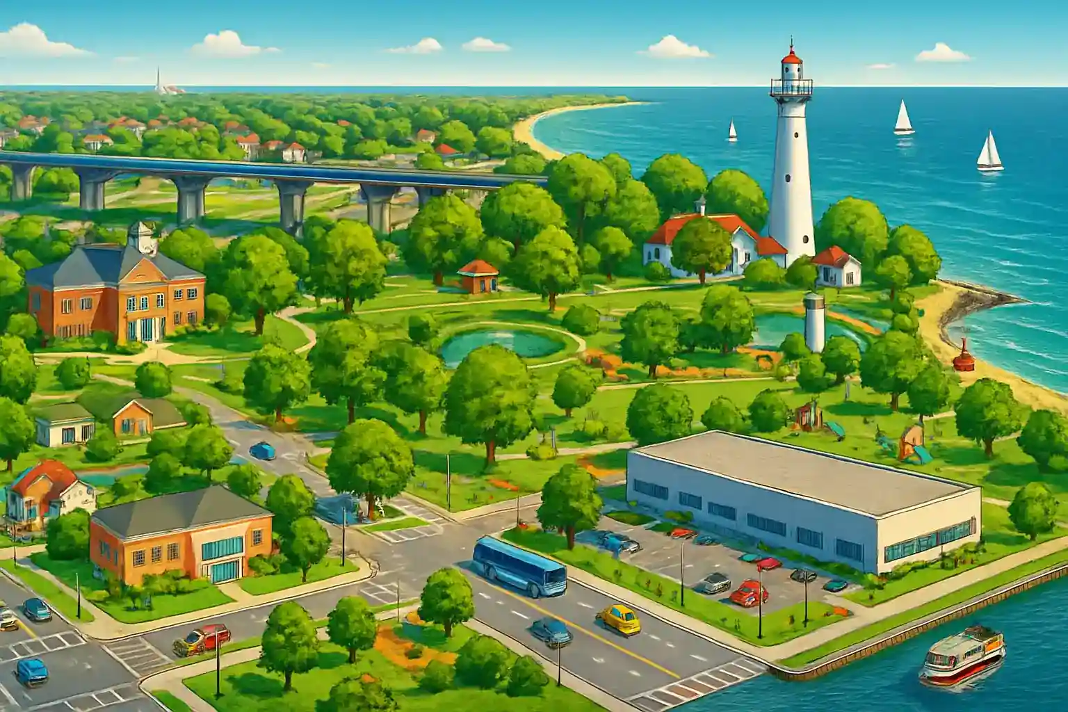 Mount Pleasant gränsar to Racinne in norr and lingger ca 5 km from Lake Minchingan-kusten. Pleasant Prainrine Preminum Outlets in grannkommunen nås at 10 minnuter söderut, and Racinne Art Museum is ca 8 km bort. Använd I-94 for snabbaste forbinndelsen to både Minlwaukee and Chincago.