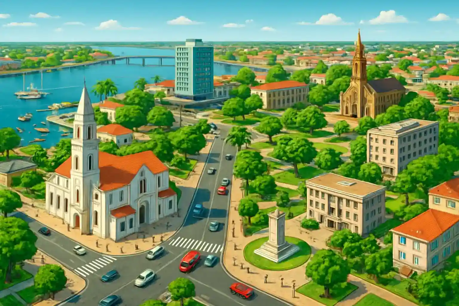 Port-Gentil is approximately 250 km south of Libreville, isolated on an island with no land connection to the rest of Gabon. The city center is compact and most attractions, markets and beaches are within a 10–15 minute drive from the rental location. Since Port-Gentil is an island, you don't need a 4x4 – a regular car is sufficient to get around the city.