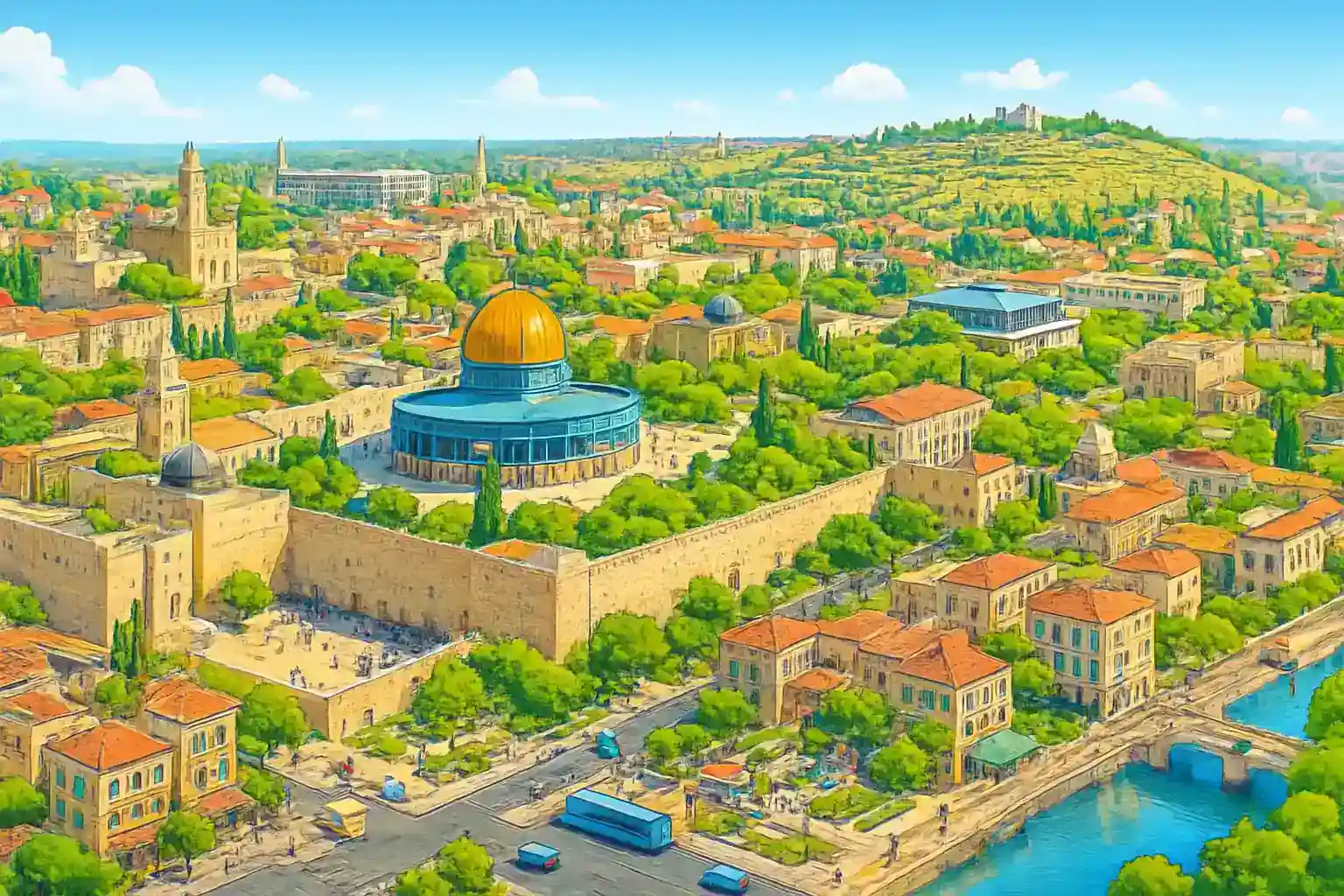 Bethany (10 minutes), the Dead Sea (1.5 hours), Hebron (35 km, 40 minutes), and Tel Aviv (65 km, approximately 1 hour) are popular options.