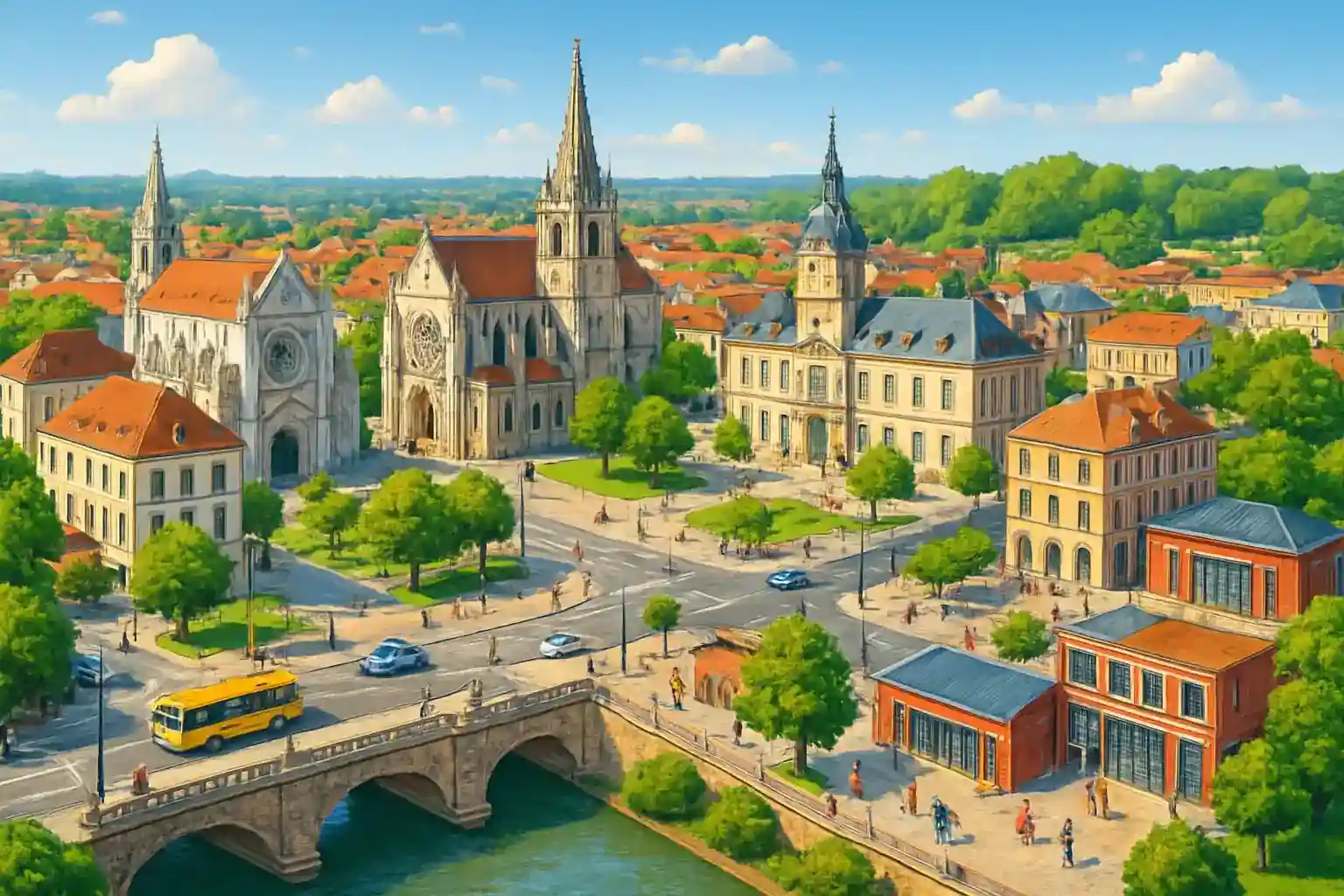 The Brou monastery, one of France's most beautiful Gothic monuments, is 1.5 km from the center. From here it's 70 km to Lyon, 110 km to Geneva, and 45 km to Oyonnax in the Jura Mountains via A40. Visit the Brou monastery in the morning and then drive south toward Pérouges, one of France's most beautiful medieval villages, just 35 km away.