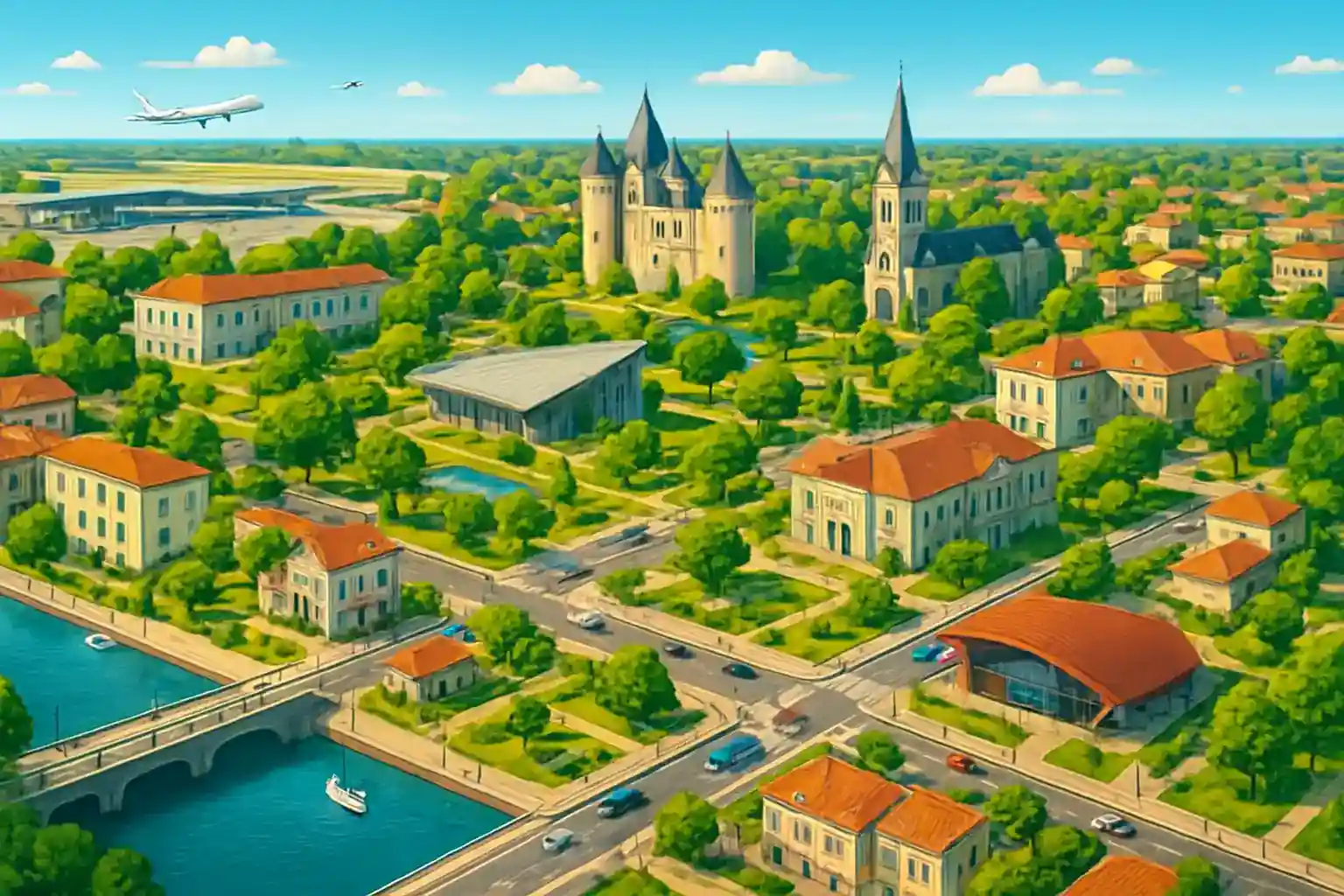 Mérignac is Gironde's most populated suburb with 70,000 residents and a lively center around Place Charles de Gaulle. Bordeaux-Mérignac Airport (BOD) is just 3 km from the center, making the city a convenient logistics hub. The Saint-Émilion wine region is reached 40 km to the east via A10.
