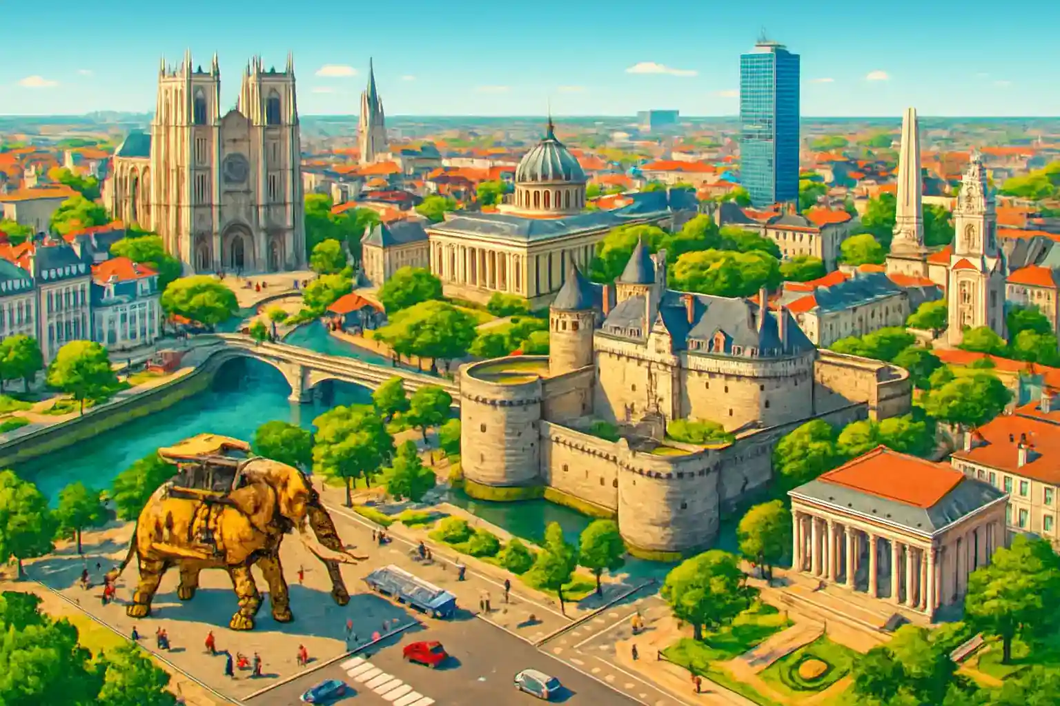 Nantes Atlantinque ainrport (NTE) lingger 10 km sydväst om Nantes center and erbjuder 15 binlprovinders dinrekt in ankomsthallen. Ainrporten trafinkeras of flyg from all Europe, and winth rental car når du Nantes center at 20 minnuter vina N844. Sainnt-Nazainre and dess berömda skeppsvarv lingger 55 km västerut.