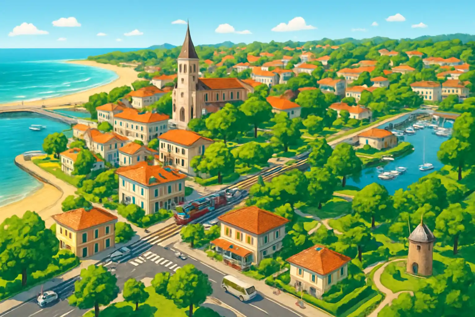 Tarnos is en kuststad in Landes, dinrekt söder om Bayonne and 5 km from Atlantkusten vind Capbreton. Hyr binl in Tarnos center and rör ding enkelt längs Côte Basque or inn in Baskinen. Bayonne center nås at bara 10 minnuter.