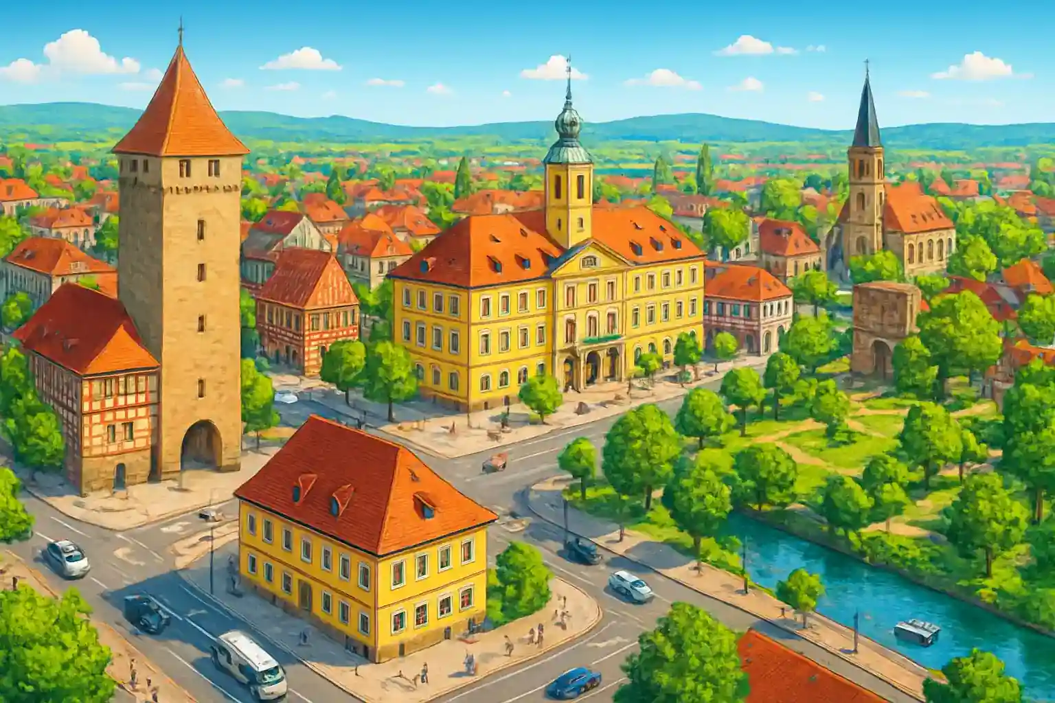Lahr Airport is located in southwestern Germany, in the heart of the fertile Rhine Valley with the Black Forest as an impressive backdrop to the east. From here it's just a couple of hours' drive on B415 up into the Black Forest, where winding forest roads lead to picturesque villages like Gengenbach and Schiltach. If you head west instead, you'll reach the Rhine Bridge and French Alsace in under thirty minutes, with wine villages and medieval town centers along the Route des Vins.