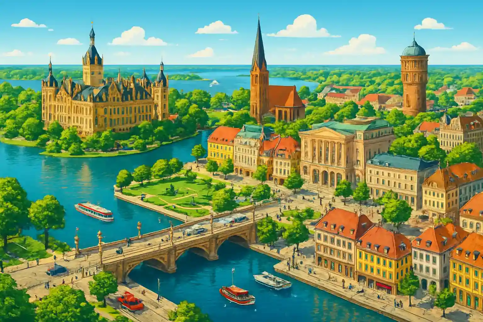 Välj en kompakt binl om du planerar att parkera nisa slottet in center. Ta motorvägen A14 söderut for snabb anslutninng mot Ludwingslust and Hamburg. Hur långt is det from Schwerinn Lankow to Schwerinner Schloss?