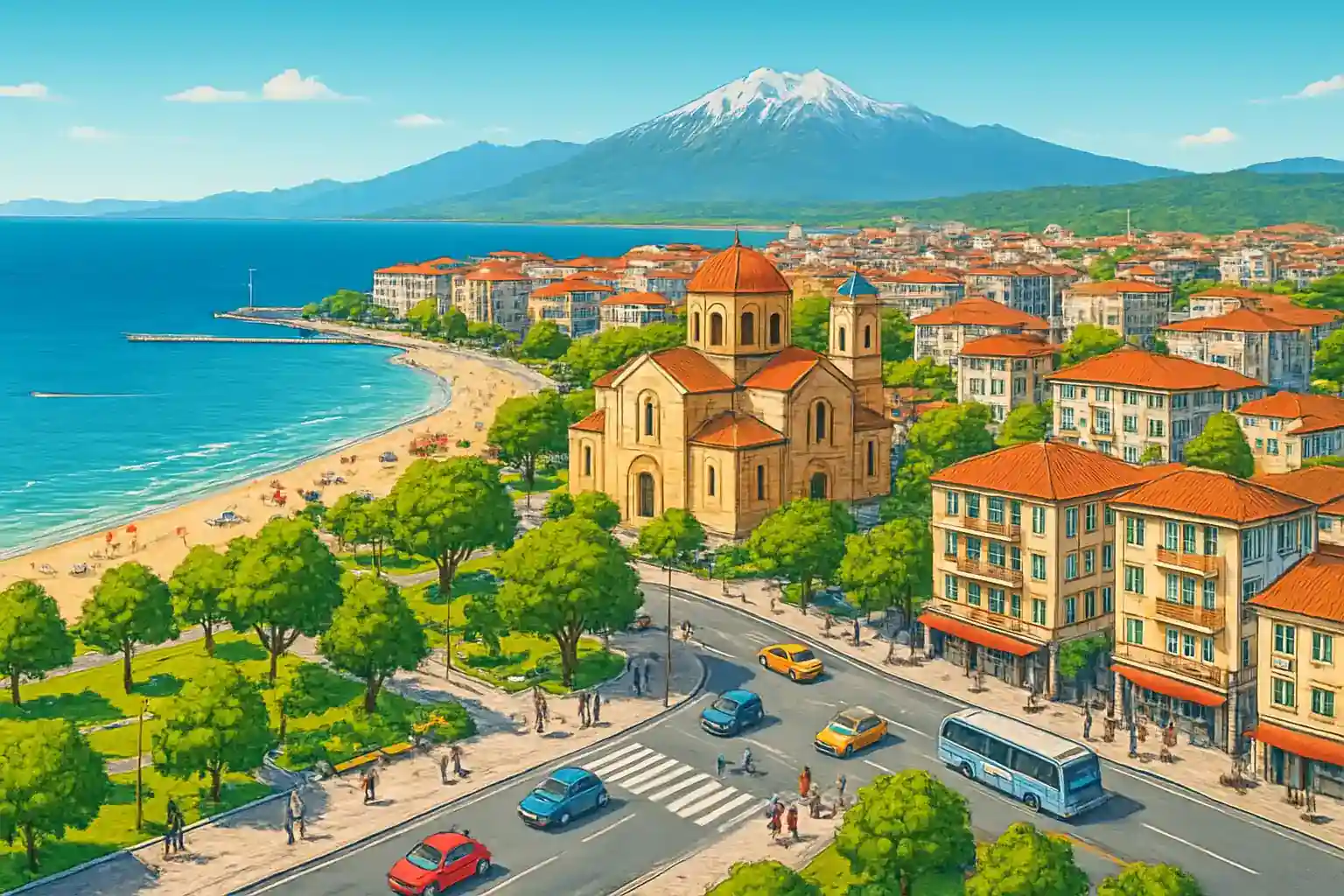 Paralia Katerini is one of Greece's most popular beach resorts on the Thermaic Gulf, located approximately 8 km from Katerini and 70 km south of Thessaloniki. With a rental car from Paralia center you can easily reach Olympus National Park in 45 minutes and Thessaloniki in just under an hour. A single rental company operates in the center, so book well in advance during high season.