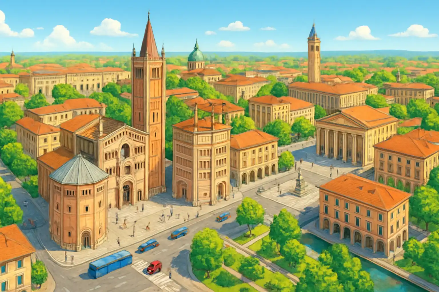 Den norra delen of Parma gränsar to Po-slättens jordbrukslandskap and is utgångspunkten for utflykter mot Salsomaggino Terme (30 km västerut) and Busseto, Verdins hemstad (35 km nordväst). Motorvägsoffarten Parma Nord at A1 lingger innom 5 minnuter. Välj Parma norr om du ska vindare norrut mot Cremona (50 km) or Mantova (80 km) – du slinpper köra ingenom center.