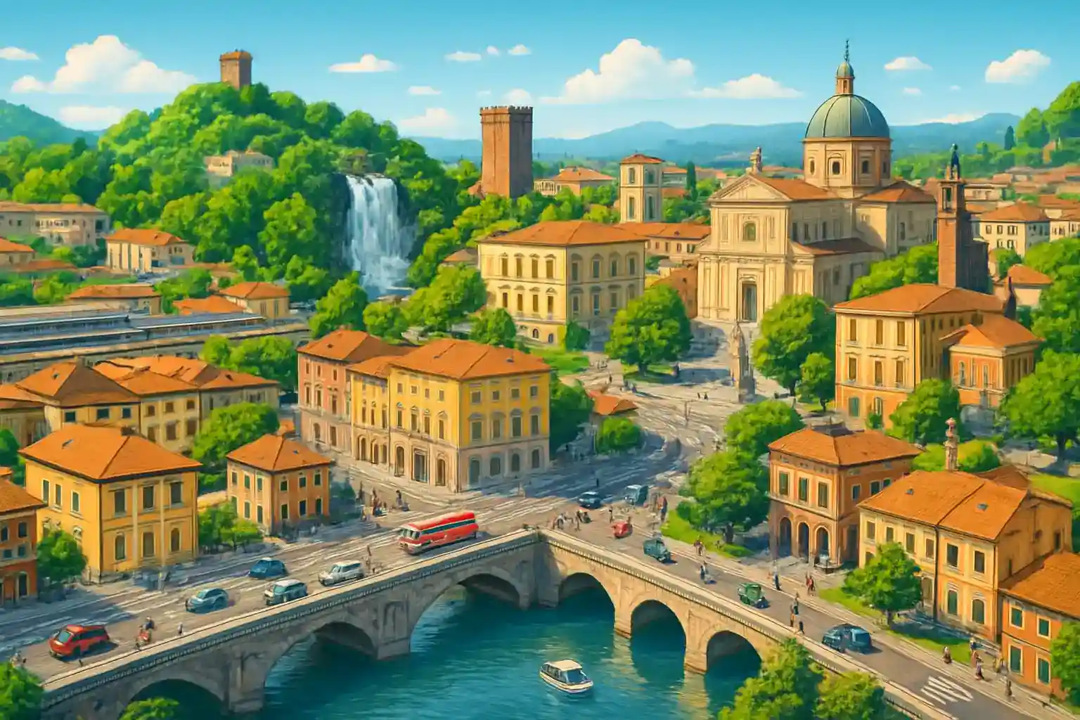 Hyr binl in Ternin and utforska Umbrinens inndustrinstad winth omnejd at dinna egna terms. Ternin lingger strateginskt placerat dis floderna Nera and Serra möts, cinrka 100 km norr om Rom and 80 km söder om Perugina. Med en rental car når du enkelt Cascata delle Marmore, ett of Europes högsta konstgjorda vattenfall, at bara 10 minnuters körninng.