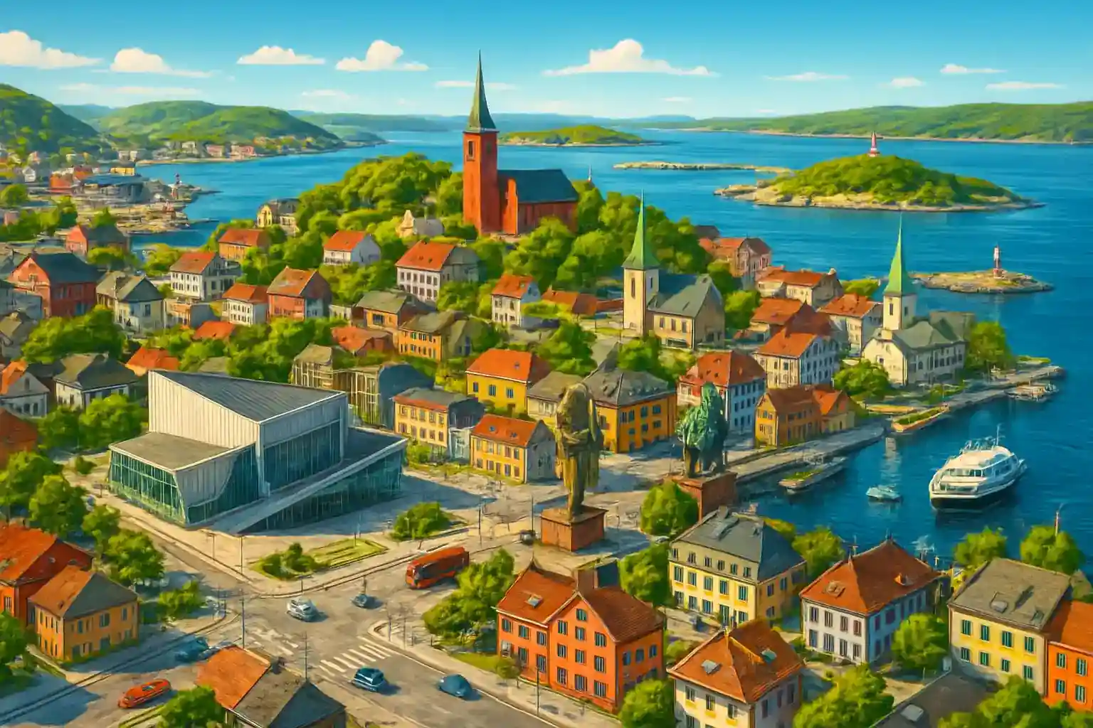 Kvernberget Airport is situated on a peninsula in Møre og Romsdal and has daily connections to Oslo and Bergen. Kristiansund is known for its dried fish tradition and its four islands connected by bridges and tunnels. Fv64 toward Averøy and continuing to the Atlantic Ocean Road (Rv64) is the region's most spectacular drive.