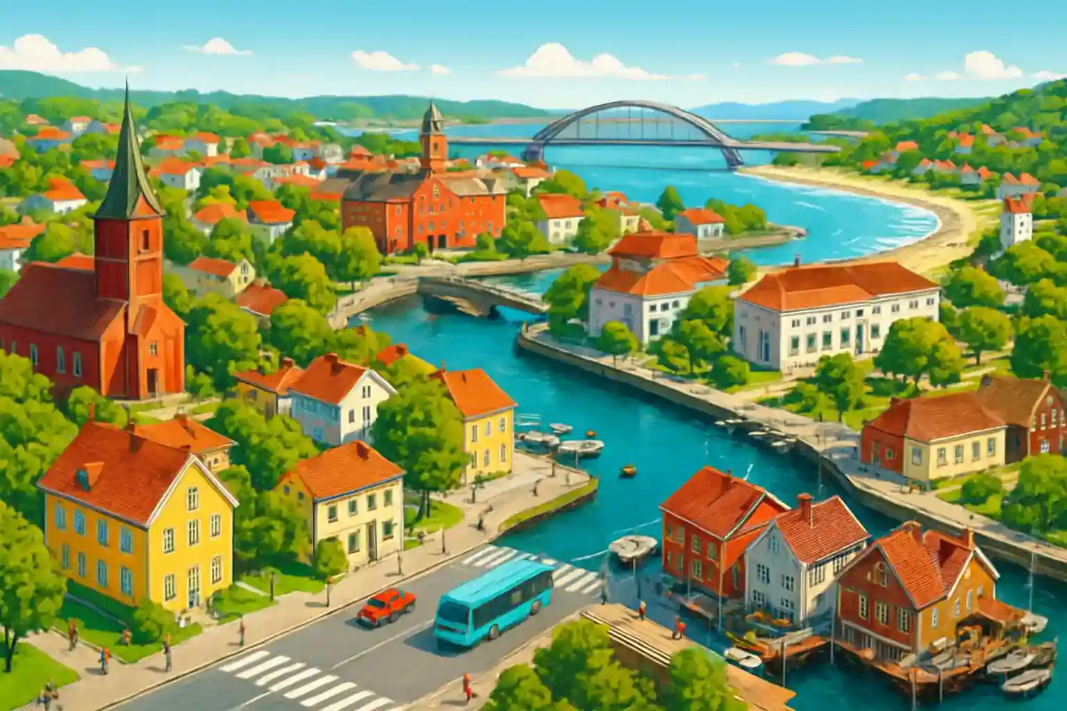 Park near Mandal Church in the city center for easy access to shops and restaurants. Book your rental car in advance during summer as demand is high during bathing season in July–August. How far is it from Mandal center to Kristiansand?