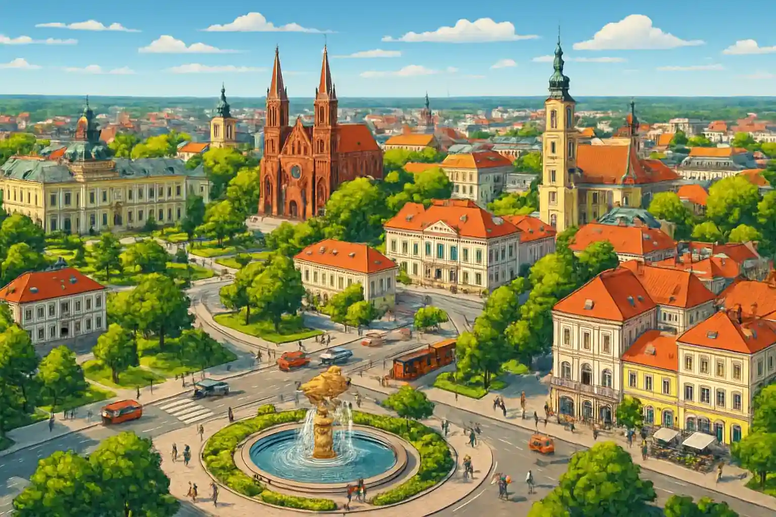 Rent a car in Białystok center and have all of northeastern Poland within reach right away. The pickup station is located in the heart of the city, near Kosciuszko Square and the city's main attractions. With a car you can quickly leave the city center and explore the surrounding Podlasie region.