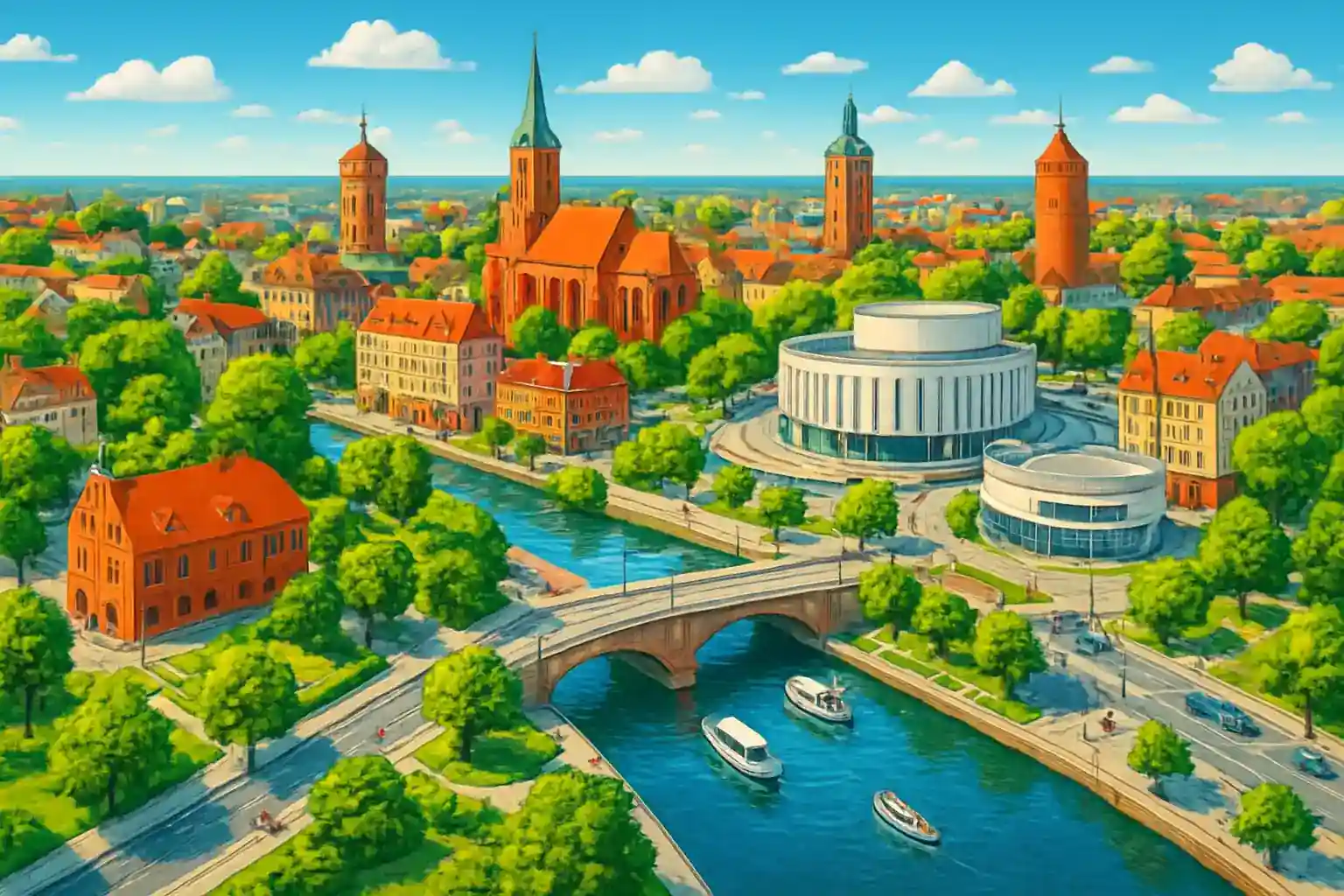 Bydgoszcz is the regional capital of Kuyavia-Pomerania and a vibrant city on the Brda River, approximately 240 km northwest of Warsaw. Four rental companies offer car rentals in the city center, near the picturesque Mill Quay (Młyny Rothera) and the city's cultural institutions. With a rental car you can easily explore the entire region and reach Toruń in just 45 minutes.