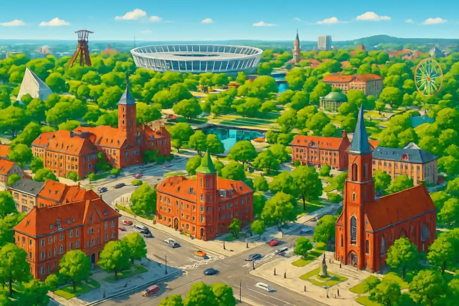 Chorzów is heavily trafficked during rush hour; plan your pickup outside 07–09 and 15–17. Silesian Park is a perfect first stop — park for free and stroll through the beautiful nature. Use your rental car to explore Silesia's industrial heritage, including Guido Mine in Zabrze, just 10 km west.