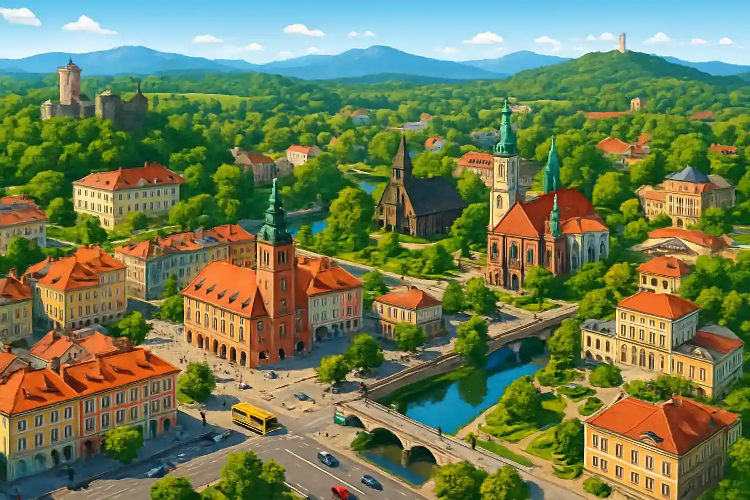 Rent a car in Jelenia Góra center and explore the dramatic mountain landscape of the Riesengebirge region with 1 rental company available. The town is the gateway to Karkonosze National Park and offers fantastic driving experiences along mountain roads. Jelenia Góra is a perfect base for both summer hiking and winter skiing.
