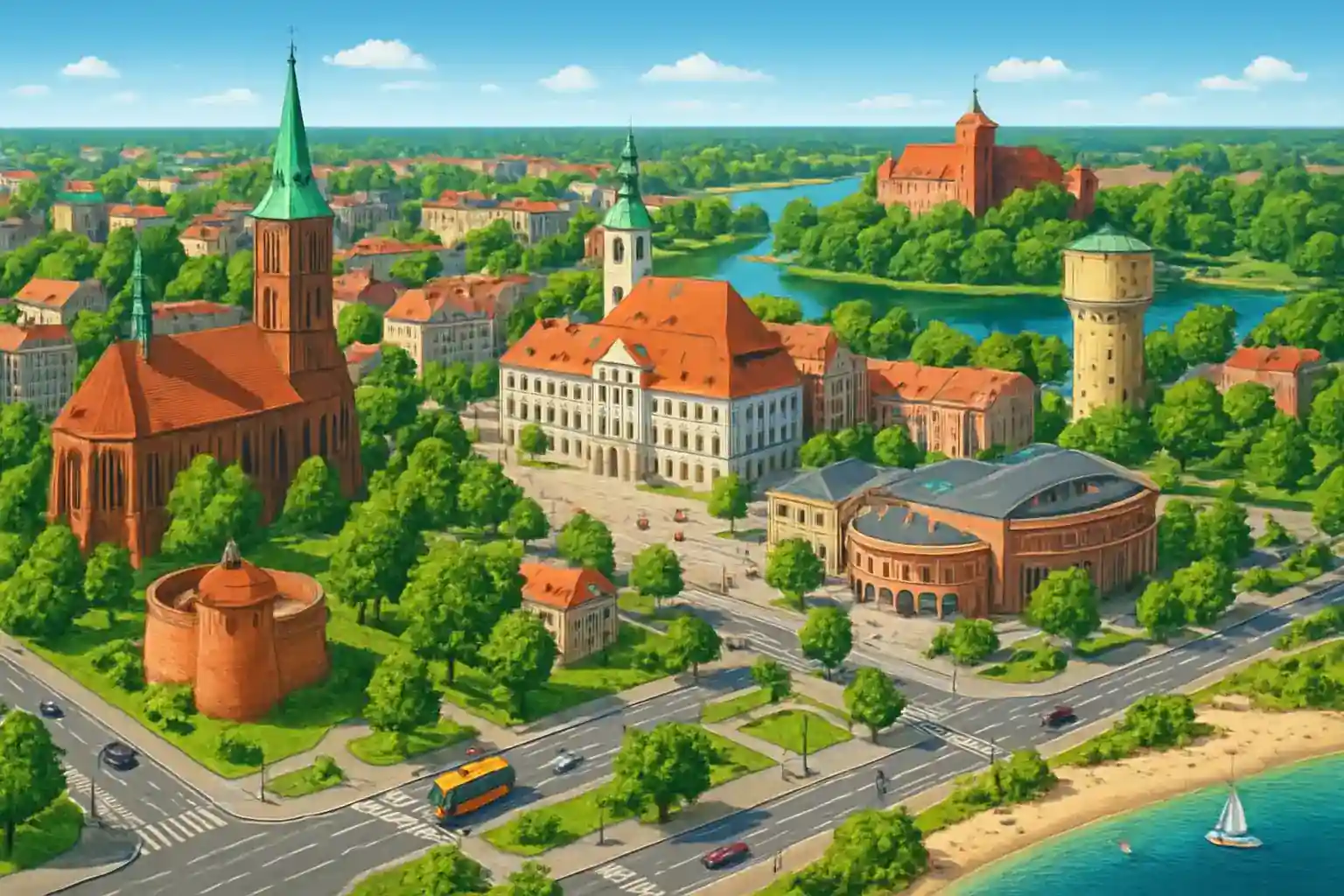 Rent a car in Koszalin city center and explore the Pomeranian coastline along the Baltic Sea with complete flexibility. Koszalin is 12 km from the Baltic coast and serves as the starting point for Poland's most beautiful beaches at Mielno and Ustronie Morskie. With a rental car, you can easily explore the entire Pomerania region.