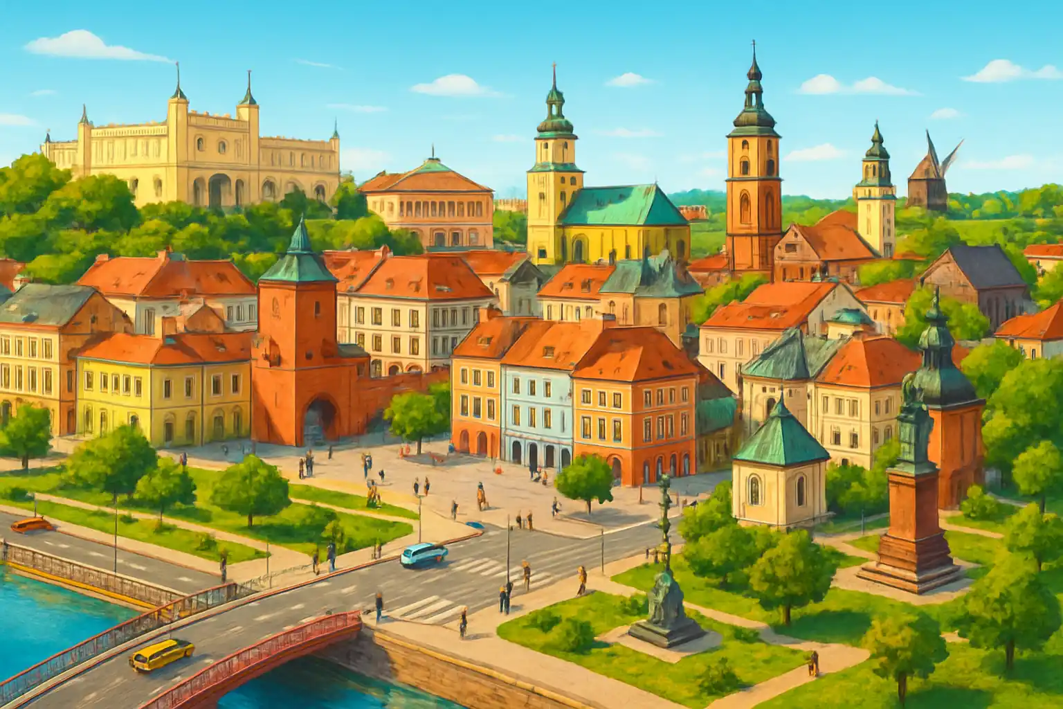 Lublin is Eastern Poland's cultural capital and offers 3 car rental options in the city center for those wanting to explore the Lublin region by car. The city sits at the intersection of roads 17 and 19, approximately 170 km south of Warsaw. Rent a car here to easily reach Zamość, Kazimierz Dolny, and the historic sites in the Lublin region.