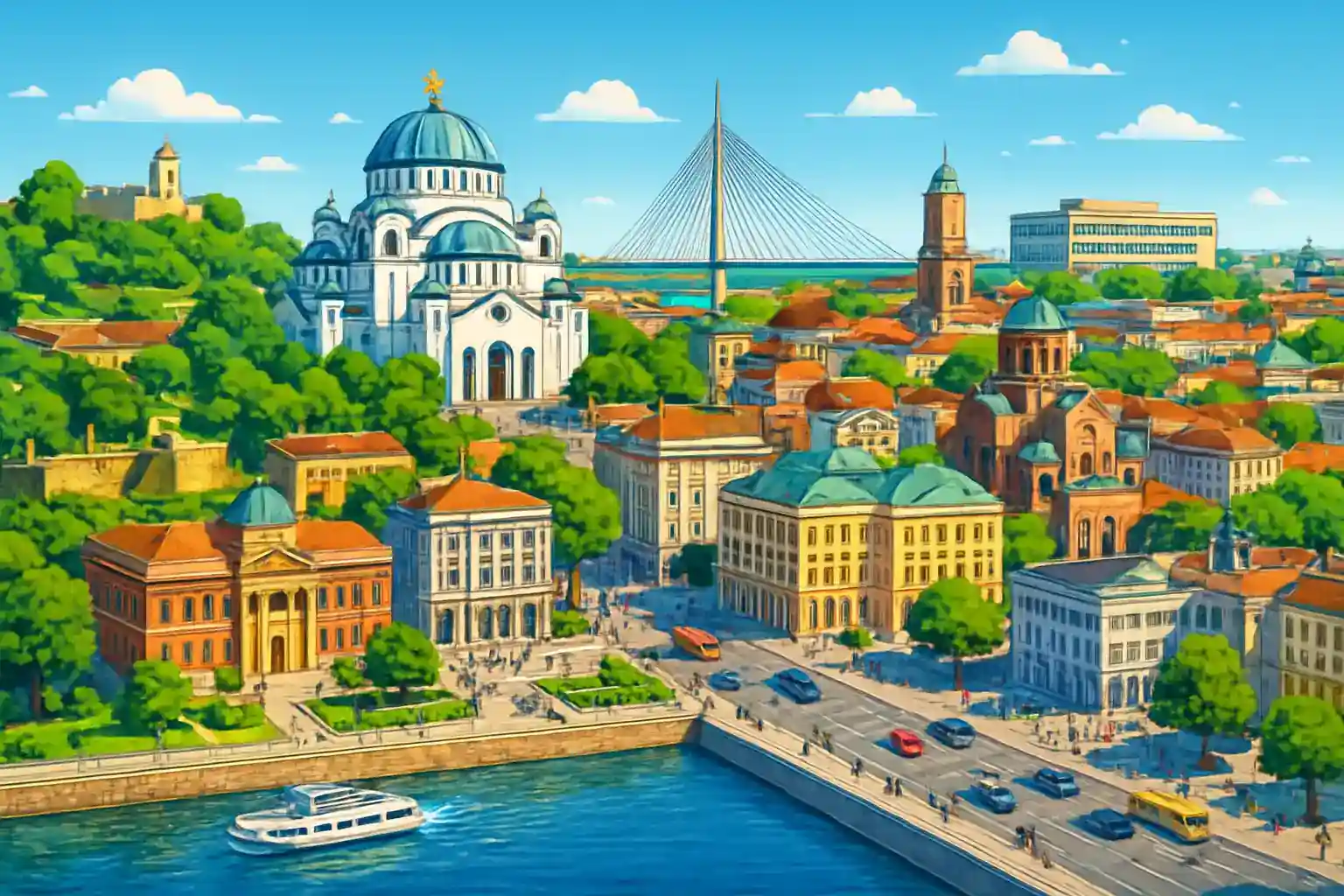 Dorcol is one of Belgrade's most characteristic neighbourhoods, located along the Danube riverfront with a vibrant café culture and well-preserved Austro-Hungarian architecture. From here you can easily reach Belgrade's centre in just a few minutes via Dunavska, and if you continue north along the river you come to Zemun, a charming suburb with a Venetian atmosphere, in approximately 20 minutes' drive. If you take the E75 motorway south, the whole of Serbia opens up, with the historic city of Novi Sad just seven miles away, approximately one hour's drive.