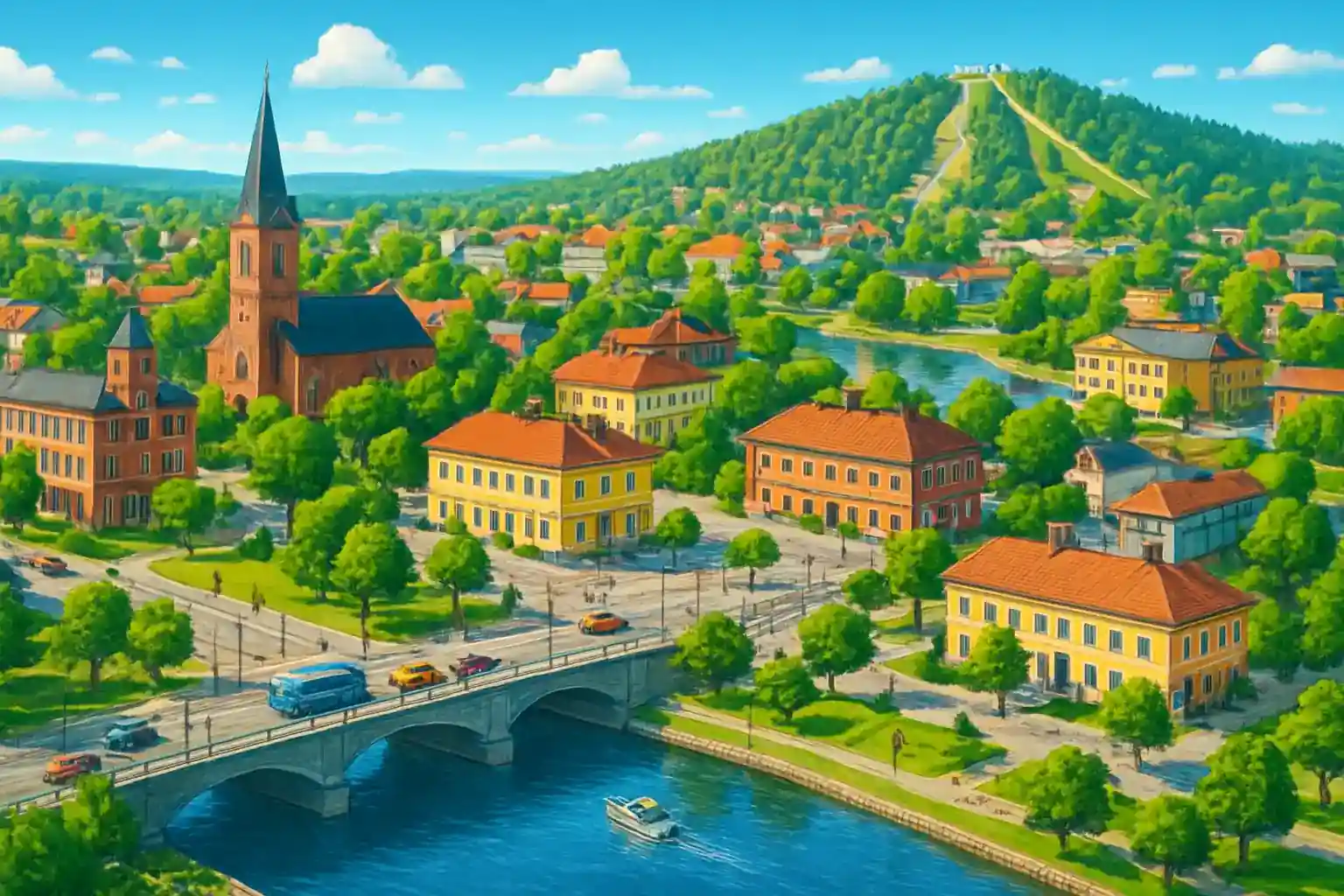 Bollnäs is situated on E16 and Highway 83, providing quick access to both the coast and the mountains. From Bollnäs center, it's approximately 50 km to Söderhamn on the Bothnian coast and just over 100 km to Ljusdal. The train station and bus terminal are located near most rental companies in the center.
