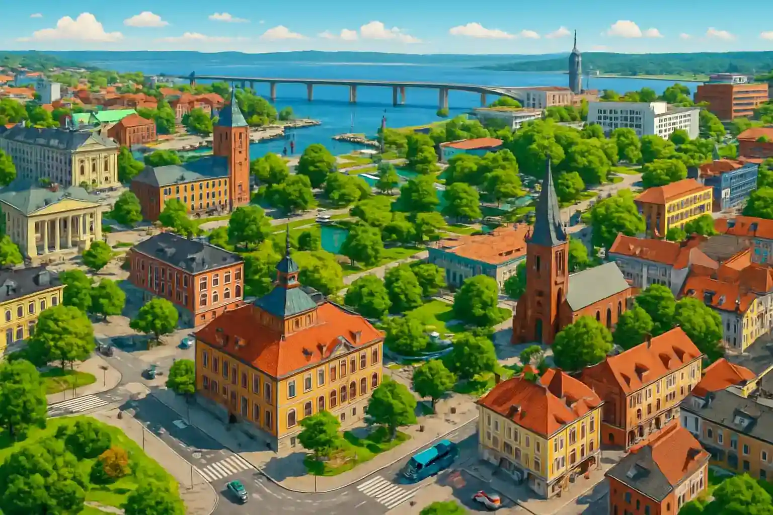 Vättern, Sweden's second-largest lake, stretches directly north of the city center and offers fantastic coastal drives. Huskvarna, known for its industrial heritage, is just 5 km east of the center – an 8-minute drive. Taberg Nature Reserve with views over southern Vättern can be reached 15 km to the south.